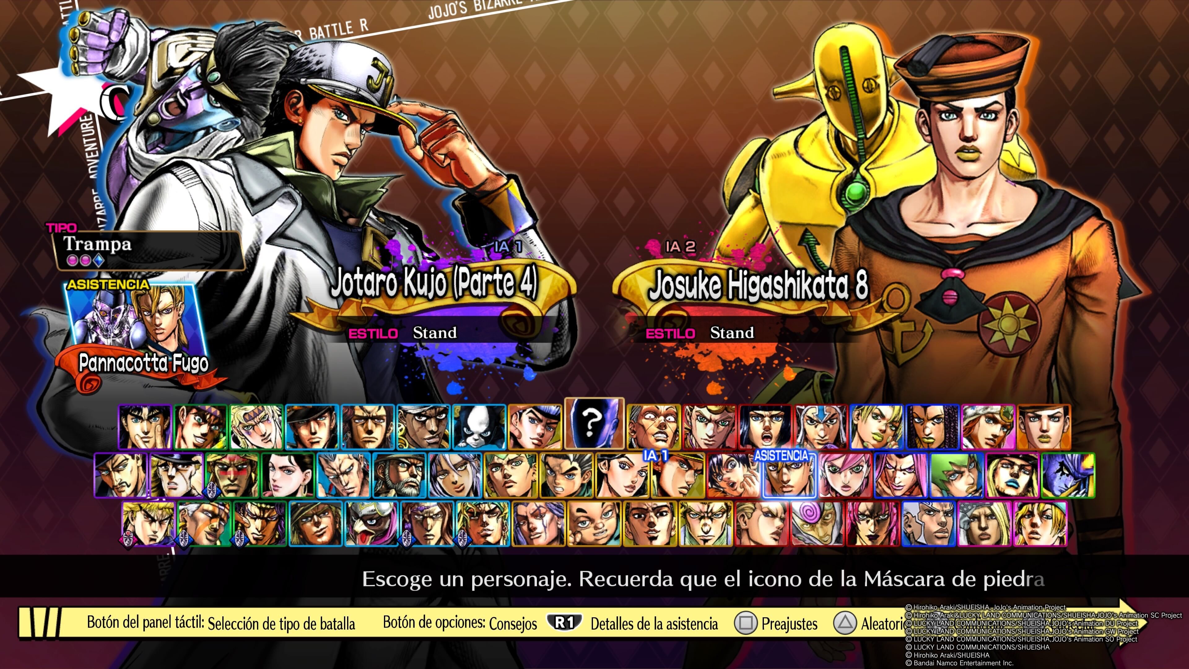 Sin embargo, R también amplía el número de personajes –muchos rescatados del flojo JoJo's Bizarre Adventure: Eyes of Heaven, un brawler 3D también de Cyberconnect2- como Robert E. O. Speedwagon, Diego Brando, Prosciutto & Pesci y más, hace equilibrios -aunque nos sigue pareciendo un poco desigual y con hitboxes discutibles-, ajustes en el gameplay y trae nuevas grabaciones de sonido para Part 6. Ahora por ejemplo alcanza los 50 personajes jugables y hay posibilidad de contar con un asistente, que es la típica llamada a otro personaje para que ejecute un ataque que amplíe un combo o sorprenda al oponente. Dependiendo del personaje aliado esta técnica variará, en efecto y rango de acción; podrías añadir un tiro a distancia, por ejemplo.