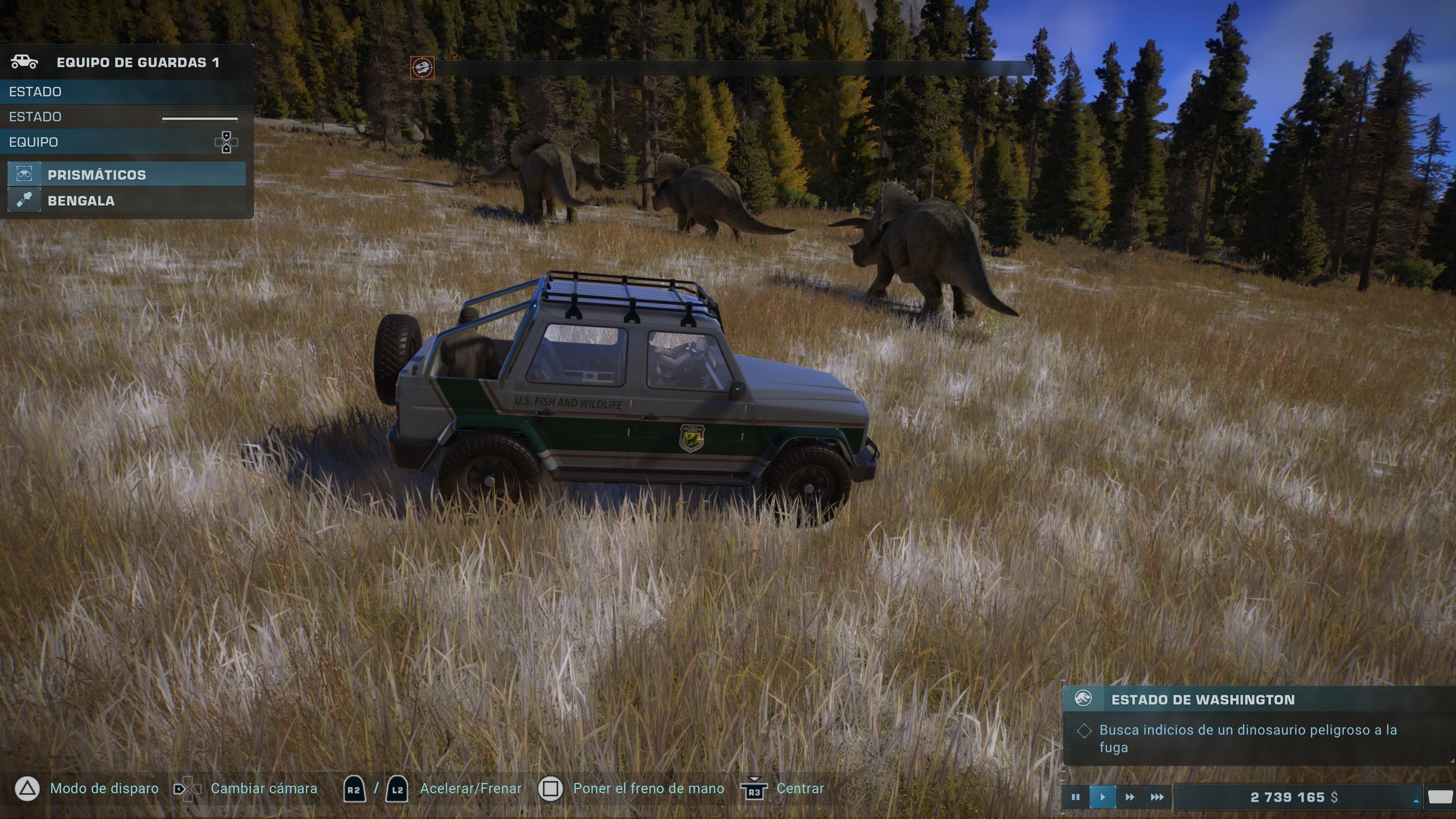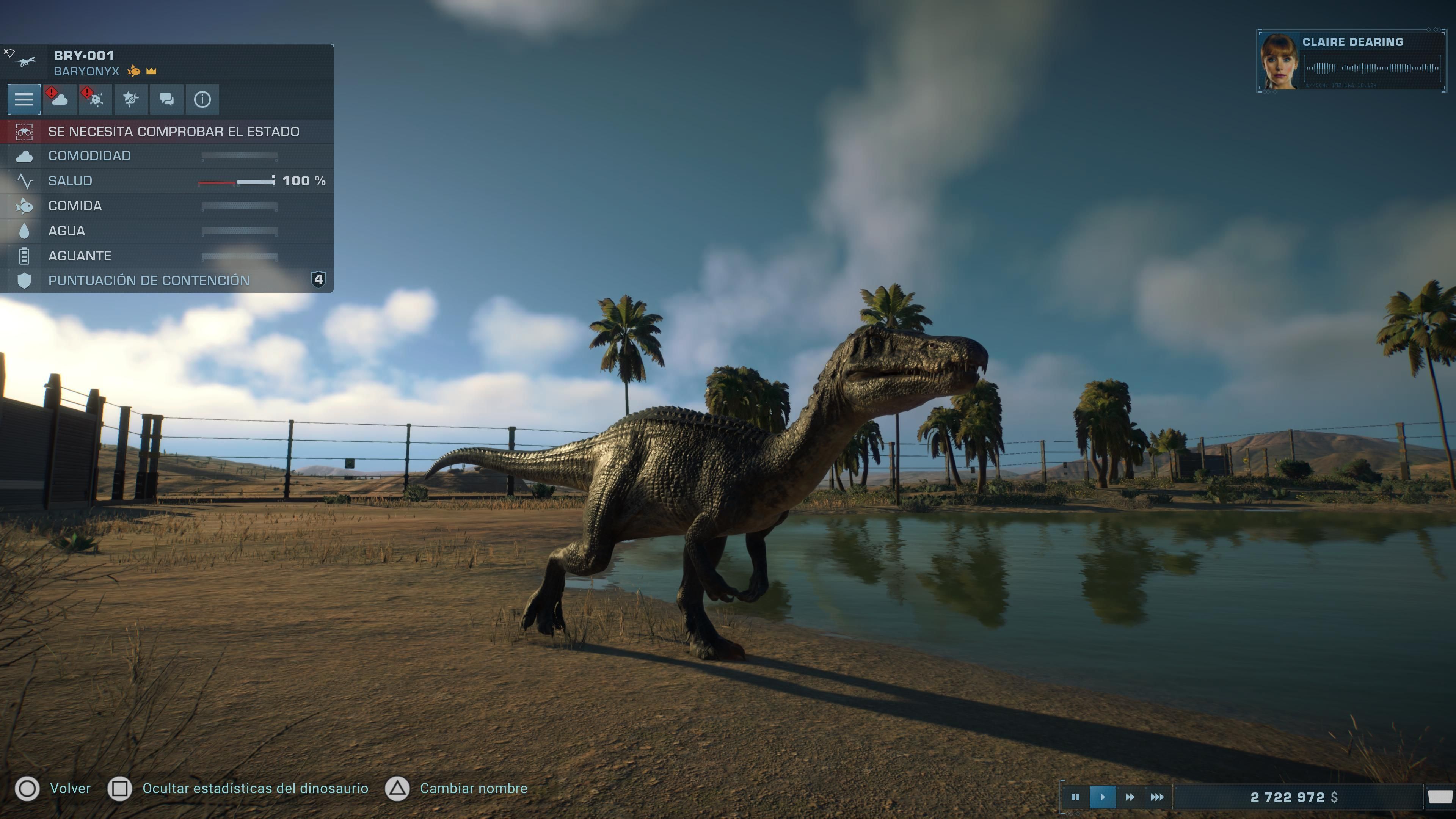 En lo referente a la versión analizada, tenemos que explicar que hemos pasado un buen puñado de horas con la versión de PlayStation 5. Hemos disfrutado con el control con el DualSense, algo que nos echaba un poco para atrás, pero que gracias a los ajustes de la interfaz y a una inteligente distribución de los botones y los menús, no se hace incómodo ni traumático. Con apenas unos minutos de aclimatación aprenderemos a movernos por los cercados, cambiando de visión y observando con comodidad nuestro reino jurásico. A excepción de algún bug concreto -que nos impedía resolver un objetivo-, es un título estable y lustroso. Jurassic World Evolution 2, como no podía ser de otra manera, ofrece una completa librería de sonidos extraídos de las películas, con rugidos, bramidos y efectos sonoros idénticos a las cintas originales. Por si fuera poco, encontramos numerosas e icónicas piezas de las bandas sonoras de John Williams y Michael Giacchino, arregladas y orquestadas de manera distinta pero igualmente embriagadora. El juego está traducido y doblado al español, con voces extraídas de los actores y actrices que participaron en los filmes originales.