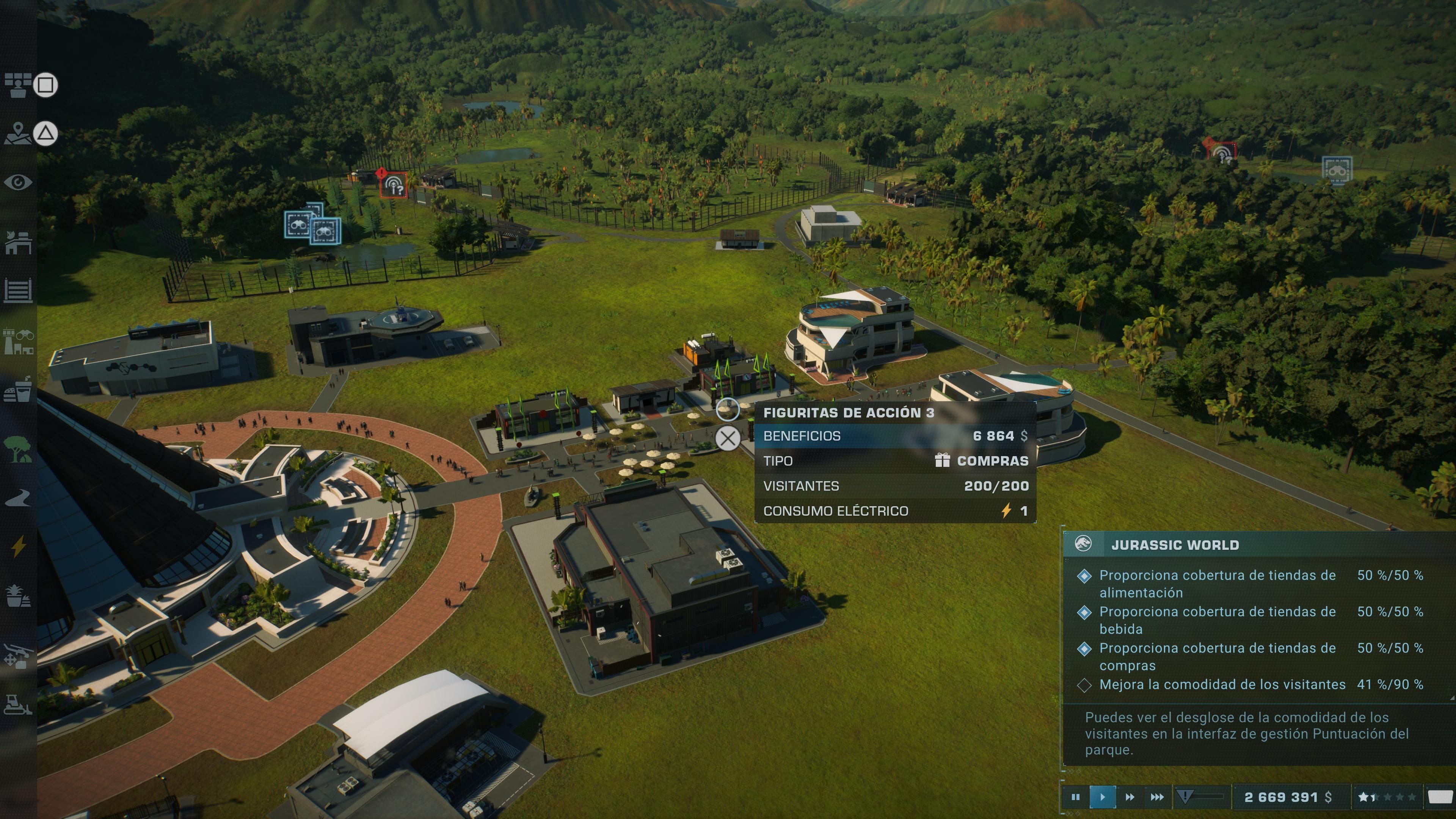 Más allá de las nuevas instalaciones, los dinosaurios y sus recintos o la entrada de ajustes en el sistema de contratación de personal y la interfaz, tenemos que aplaudir también el cambio de la distribución de energía, más intuitivo y práctico, o la incorporación de pequeños cambios en la gestión de los visitantes, que tendrán diferentes prioridades según sus inclinaciones de compra o experiencias. Era uno de los aspectos más descuidados y aburridos del primer juego, y ahora parece haber encontrado su punto exacto, haciéndolo fácil de aprender pero algo complicado de dominar. Seguimos echando en falta algunas ideas de un título como Jurassic Park: Operación Génesis, pero es un paso adelante con respecto al videojuego lanzado anteriormente por Frontier.
