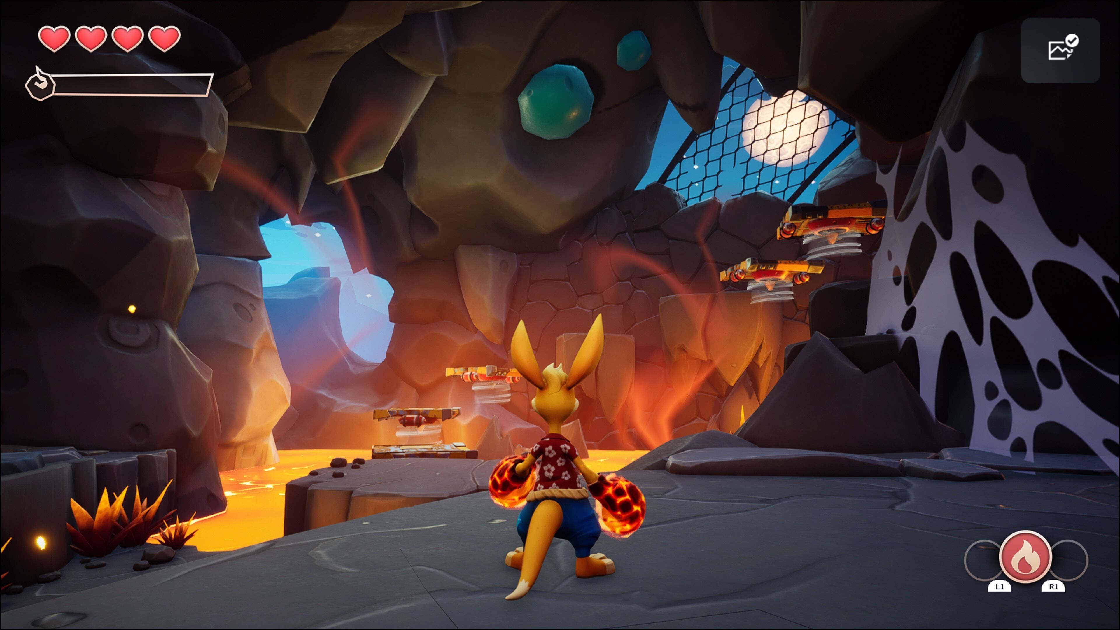 Incluso en lo que respecta al diseño de las diferentes zonas que visitamos, a las que accedemos desde una apacible aldea de canguros que funciona como hub central, caen también en ese tipo de generalidades que no le hacen ningún bien al conjunto: hay zonas de nieve, cuevas de fuego, junglas misteriosas… Todo esto lo hemos visto ya anteriormente, lo que también sucede con las habilidades de Kao: además de los ataques básicos de los guantes de boxeo, estos también se pueden impregnar de ciertos poderes elementales que nos ayudarán más en puzles del escenario que en los combates. Fuego, hielo, planta… Nada nuevo, tampoco aprovechado con inteligencia: todo responde y se utiliza tal y como te imaginas.
