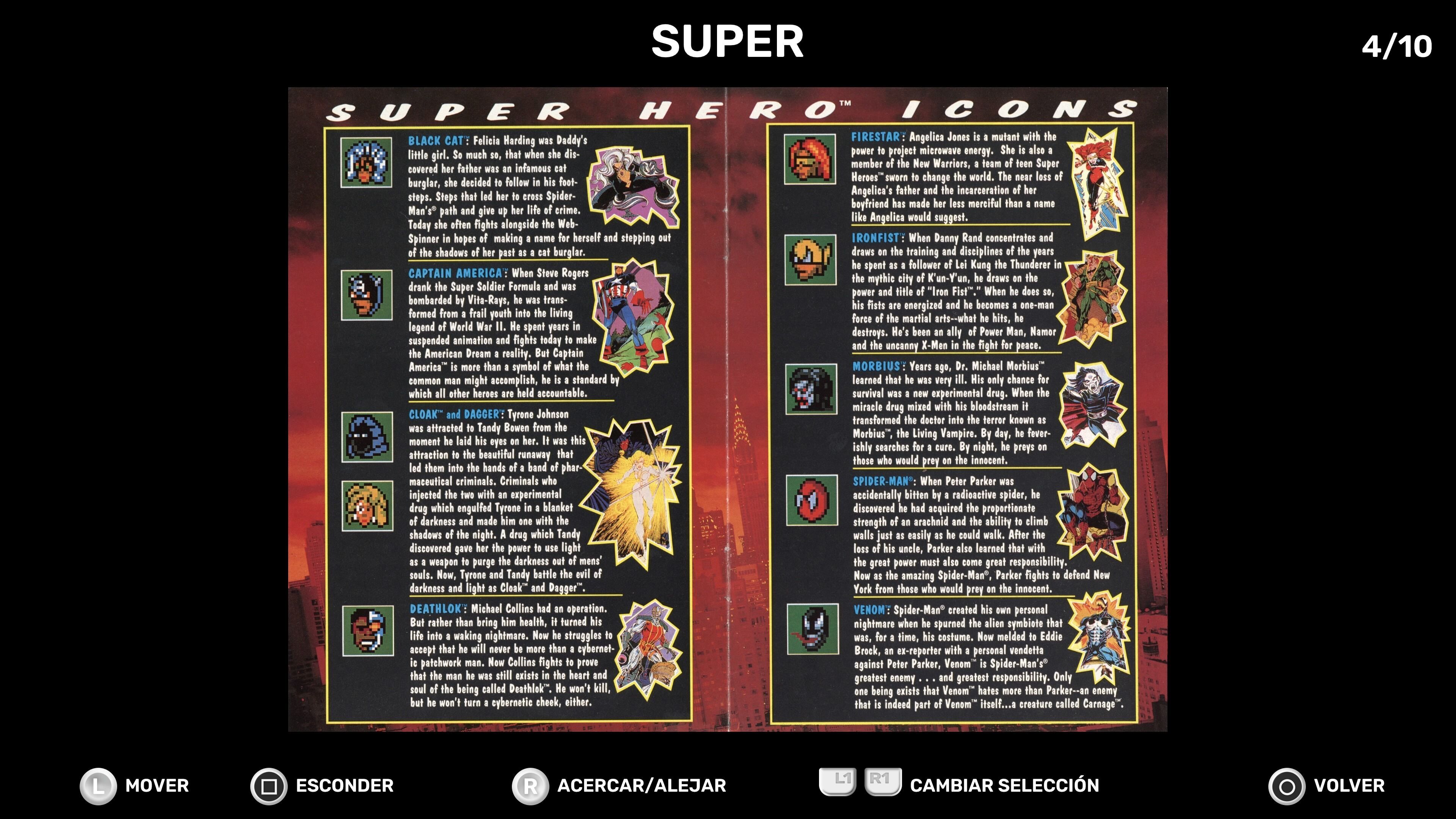 La galería de extras también nos ha dejado un tanto fríos. En ella podemos escuchar la banda sonora de los juegos, ver ilustraciones y artes promocionales, explorar los manuales de instrucciones, echarle un vistazo a las cajas y portadas y en el caso de Maximum Carnage hasta comprobar sus documentos de diseño originales (lo que nos ha parecido interesantísimo por el enorme valor documental que tiene algo así), pero una vez ahondas en sus contenidos te das cuenta de que hay muy pocos contenidos realmente y no todos los títulos han recibido el mismo cariño.