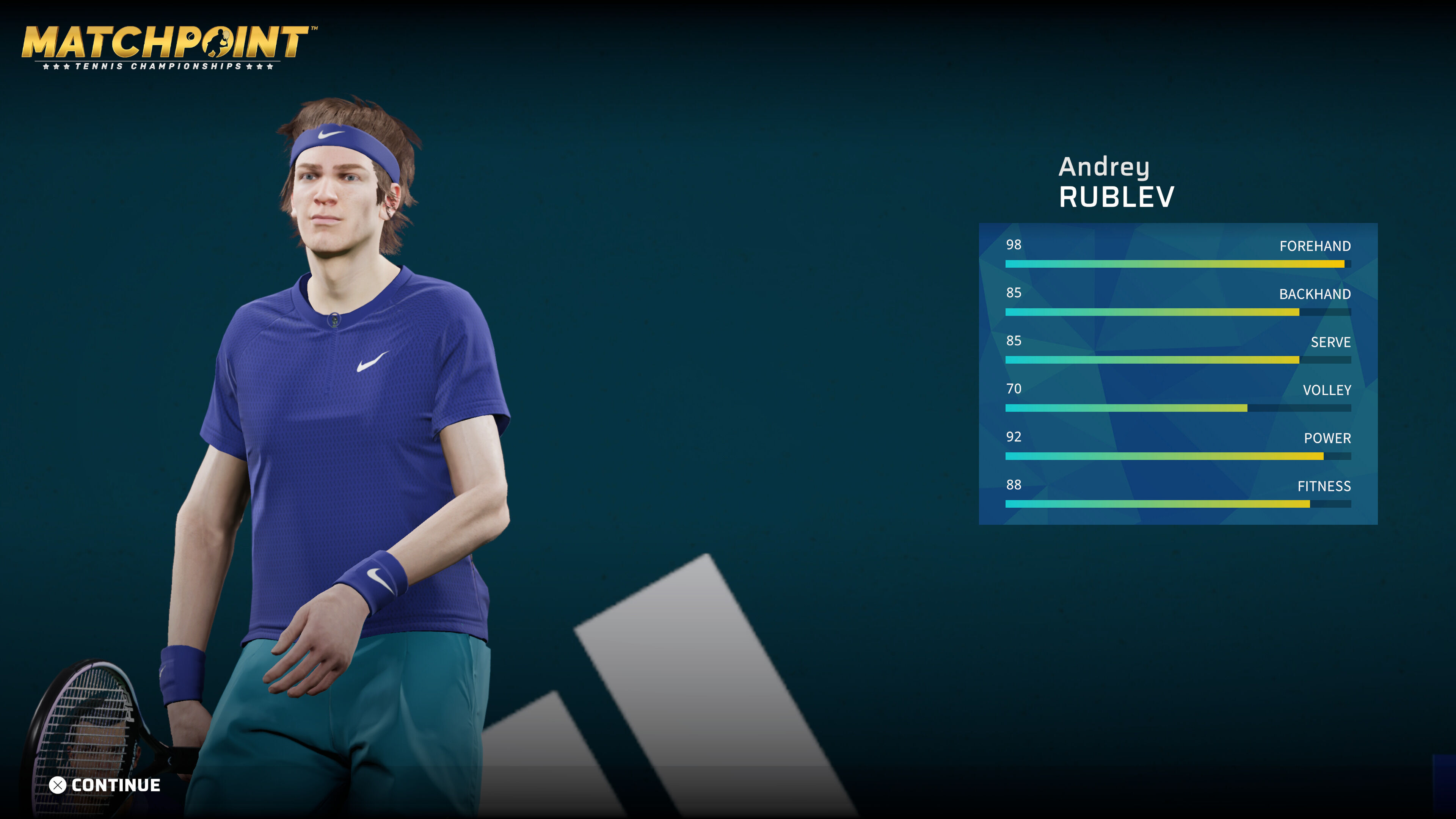 El mayor problema de Matchpoint: Tennis Championships es la falta de contenido. Y cuando hablamos de «contenido» no sólo nos referimos a modos de juego o plantilla (plantilla, por cierto, que cuenta con nombres como Garbiñe Muguruza, Carlos Alcaraz, Andrey Rublev, Casper Ruud y Hubert Hurkaczs, pero con grandes y obvias ausencias) sino a todo. Desde la presentación y la puesta en escena (nula, una vista aérea del estadio es lo máximo que vamos a ver), a la falta de partidos a dobles, falta juego por todos lados. El modo para crear a nuestro jugador nos permite, básicamente, combinar partes de los tenistas reales, y más allá del modo carrera no hay mucho que hacer offline. Online tenemos partidos clasificatorios, amistosos y con amigos. Punto y final.