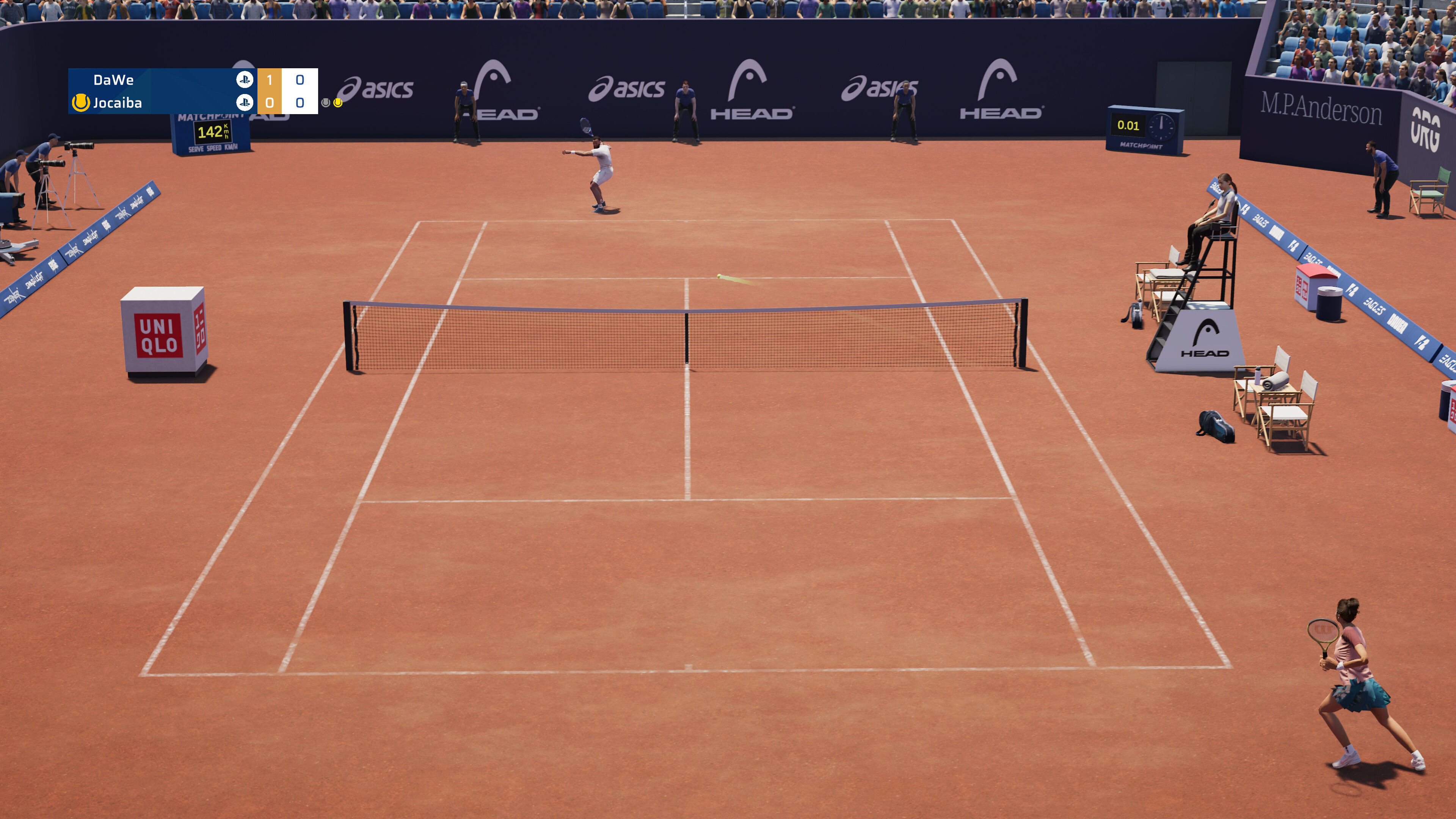 Aparte del contenido, nos llega igual de justo en lo técnico. Los modelados de los tenistas no están a la altura, las animaciones no se conectan bien y todo es demasiado básico para un juego de PlayStation 5. Al menos, cuando estamos en el partido propiamente dicho, jugando, estas carencias pasan más desapercibidas. Lo que es difícil de ignorar es la falta de sincronización vertical, que si bien es imperceptible durante los puntos porque no se mueve la cámara, parte la pantalla por la mitad en el resto de secuencias.