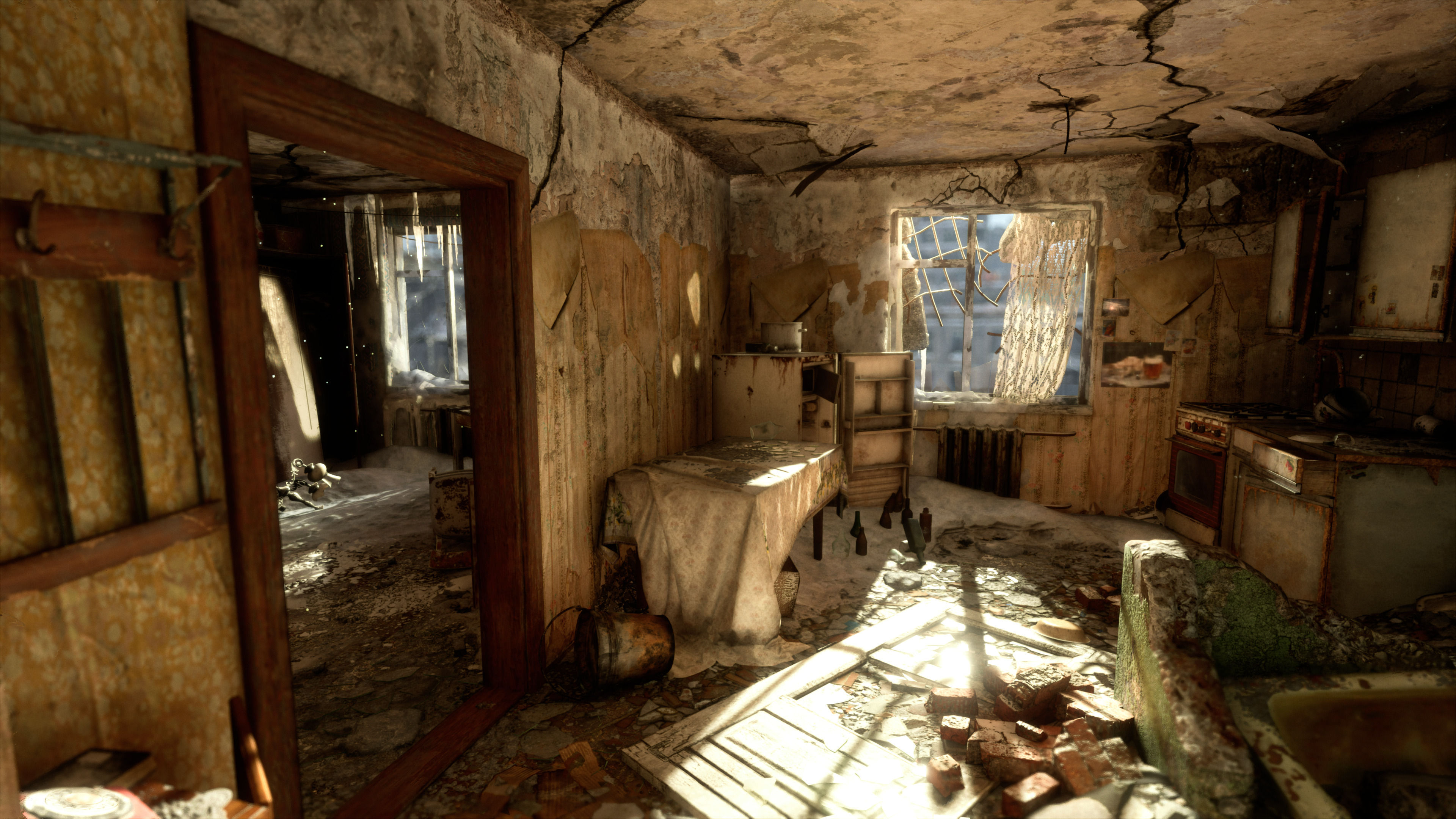 Dicho esto, podemos centrarnos en comentar las novedades. Así, si jugasteis Metro Exodus en Xbox One o PlayStation 4, os vais a encontrar un lavado de cara espectacular. Mientras que la versión de PC vio el trazado de rayos mejorado, en consola pasamos de 0 a 100, sustituyendo la iluminación predefinida por un espectacular ray tracing, que ilumina todas las escenas de manera muchísimo más realista, y que permite crear sombras precisas y hacer que los colores de cada superficie se desprendan de manera mucho más natural.