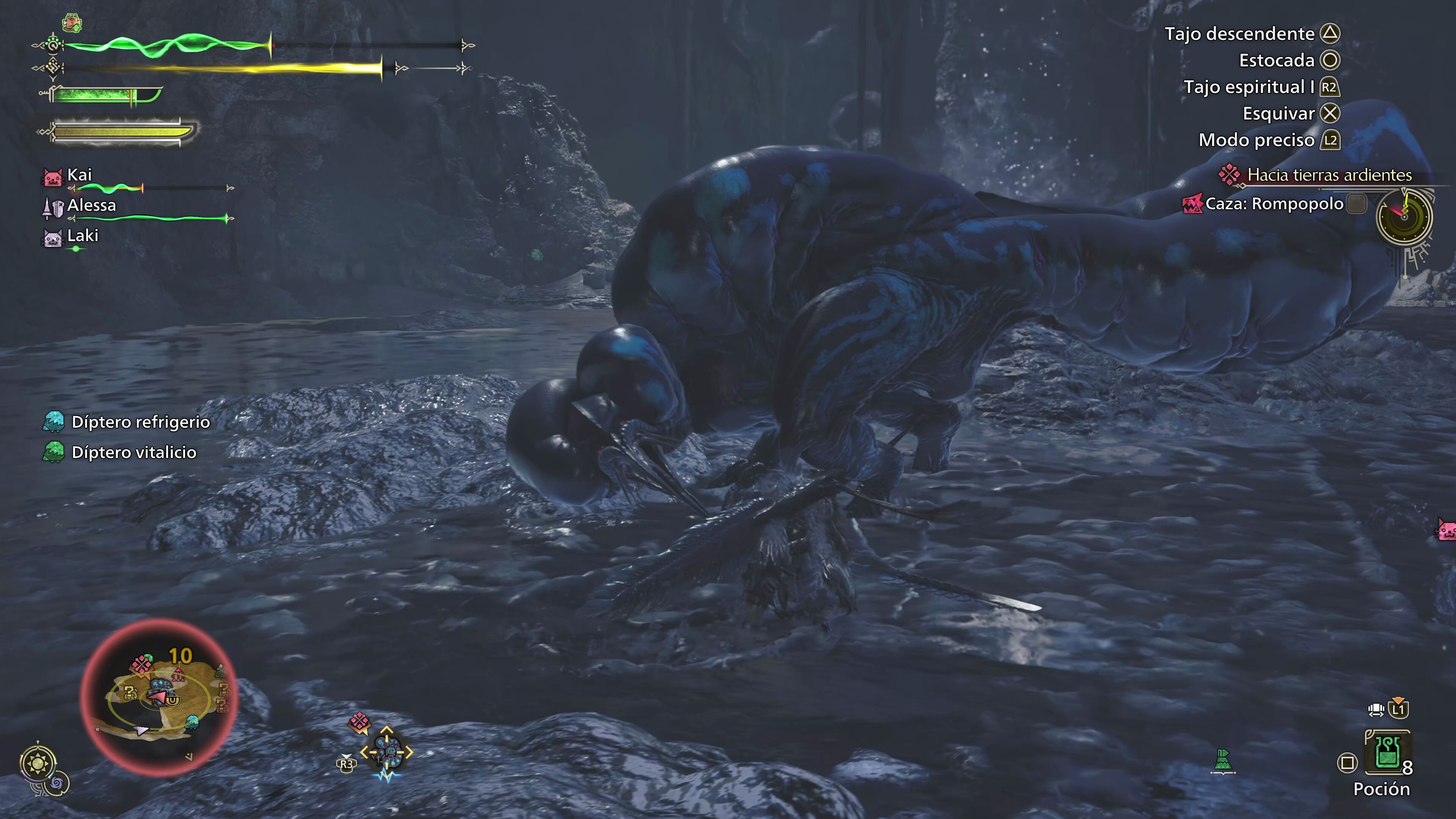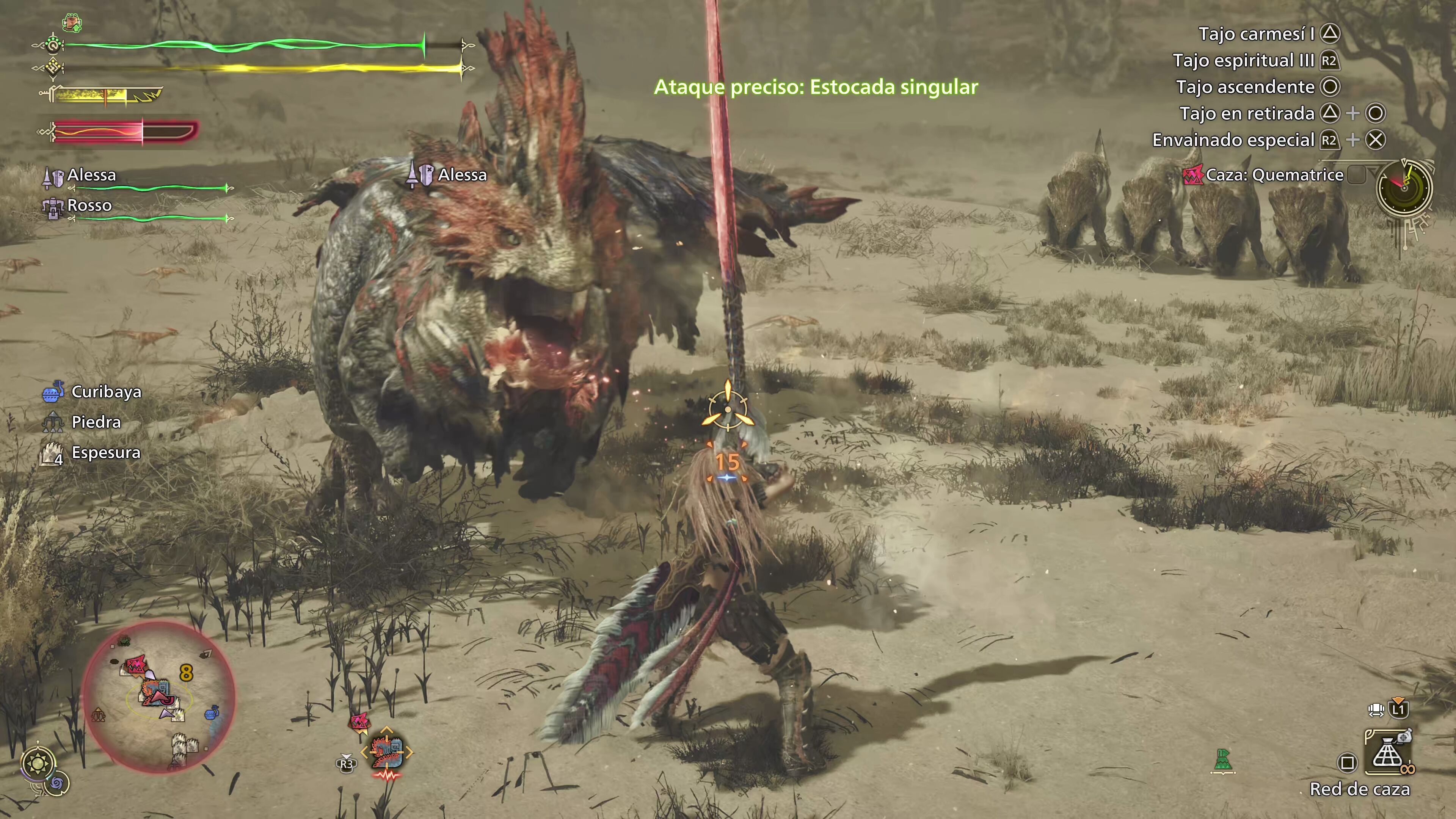 En lo que respecta al nuevo sistema de heridas, se trata de una mecánica que nos permite, tal y como su propio nombre indica, abrir heridas en las partes de los enemigos en las que golpeemos repetidas veces. Al hacer esto, crearemos un punto débil que podremos explotar si atacamos ahí, aumentando así el daño realizado. Además, con el modo preciso podemos realizar una serie de movimientos especiales destinados a explotar heridas que, además de hacer un daño devastador, suelen aturdir a los enemigos y recompensarnos con materiales adicionales. Eso sí, una vez hecho esto, la herida desaparece para que no podamos abusar.
