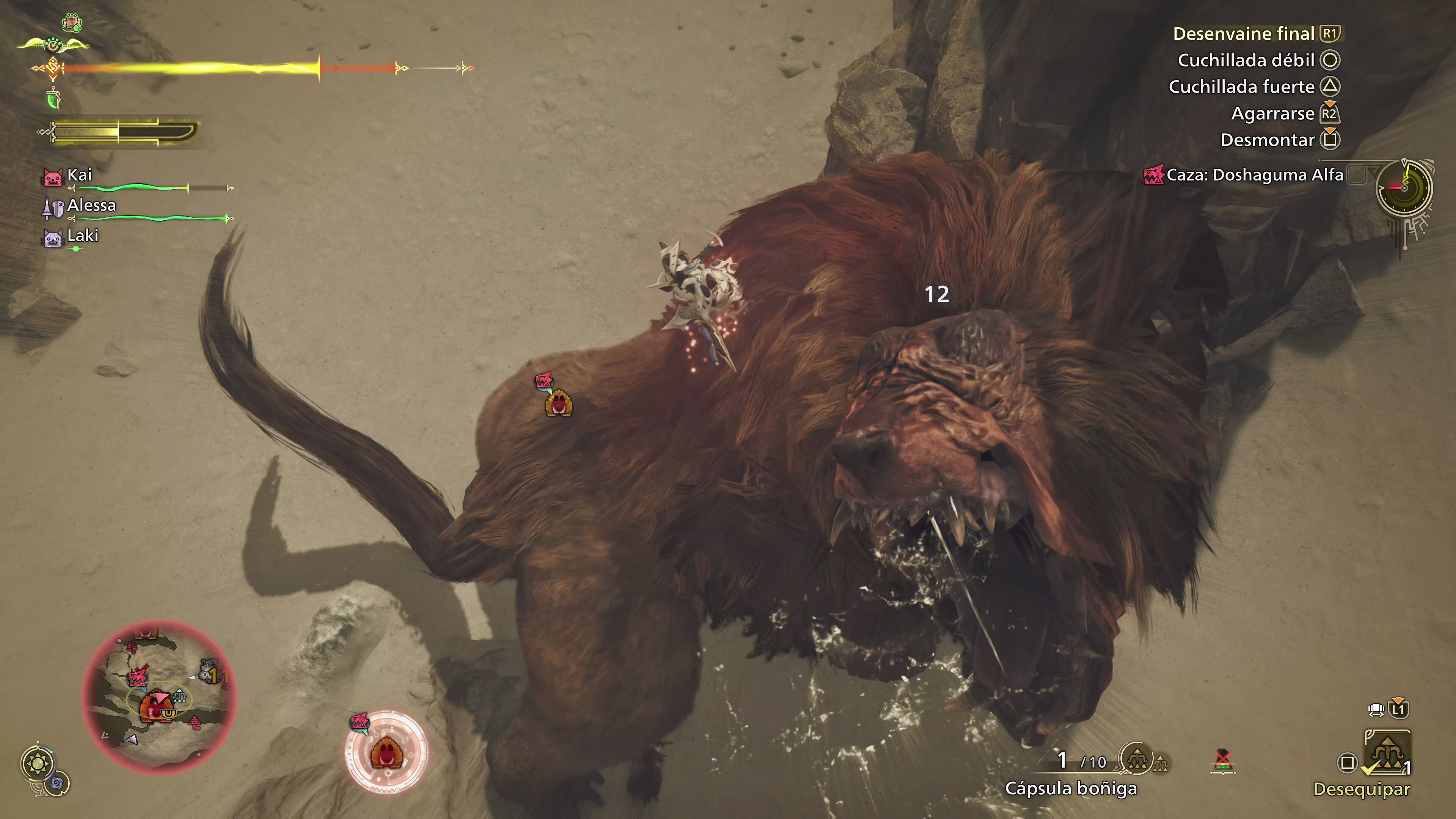 Otra utilidad del Seikret es que gracias a él podemos equiparnos dos armas distintas e intercambiarlas al vuelo cuando estemos sobre su lomo, algo que nos ha parecido muy útil, por ejemplo, para las misiones que implican cazar a más de un monstruo, pudiendo llevar una que sea efectiva contra cada uno de ellos, dándonos así una mayor versatilidad y adaptabilidad. Además, creednos cuando os decimos que esto os va a ahorrar muchas visitas al campamento para cambiar de arma tras cada cacería.
