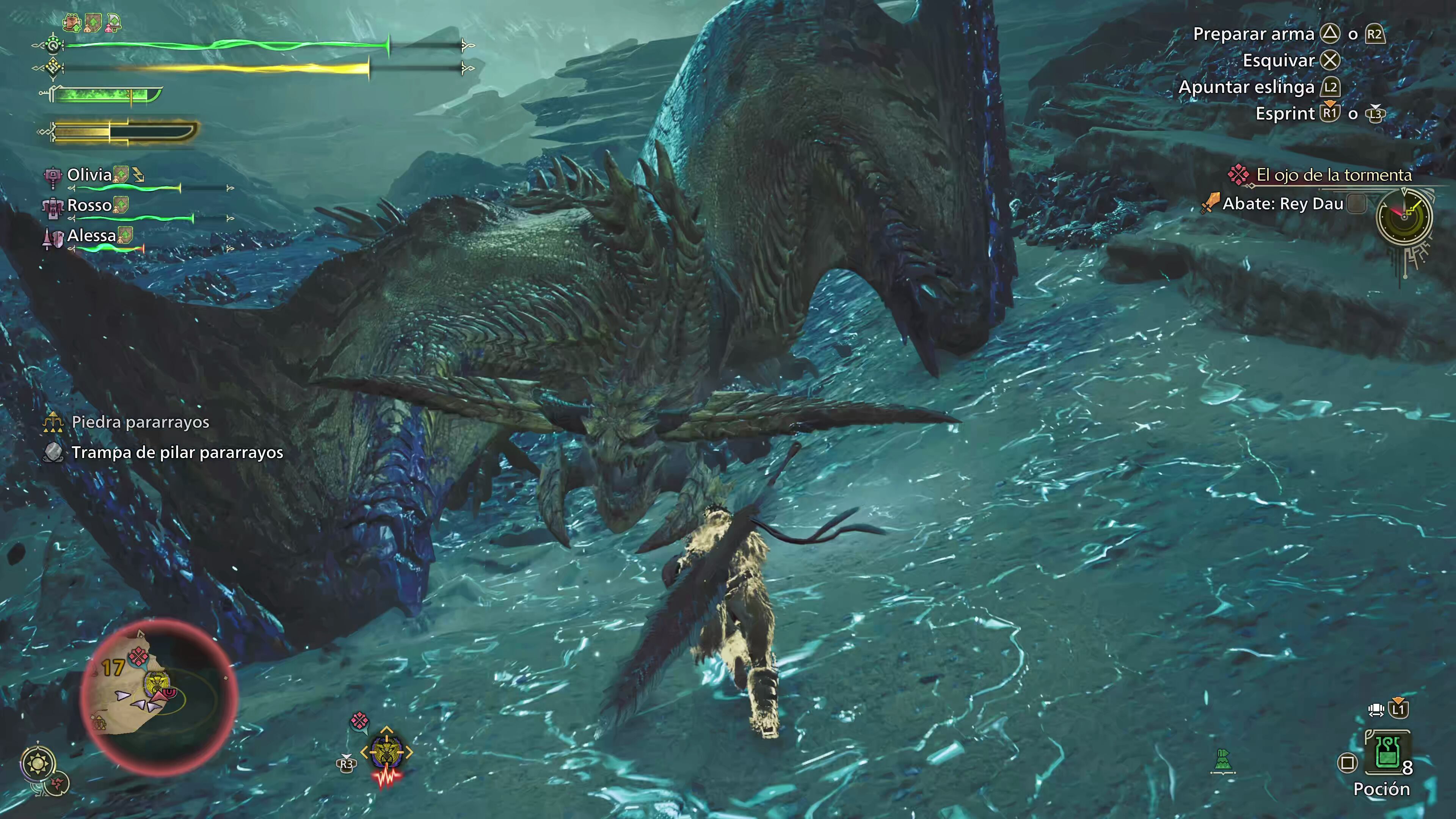 Evidentemente, como buenos cazadores, seguimos teniendo acceso a diversas trampas que podemos colocar por el escenario para castigar a placer a las criaturas durante unos segundos, bombas con las que hacer un daño devastador, numerosos objetos curativos y también regresa la eslinga, gracias a la cual no solo podemos recoger proyectiles con diferentes efectos para dispararlos, sino también recolectar recursos a distancia y aprovechar ciertos elementos del entorno para usarlos contra nuestras presas.