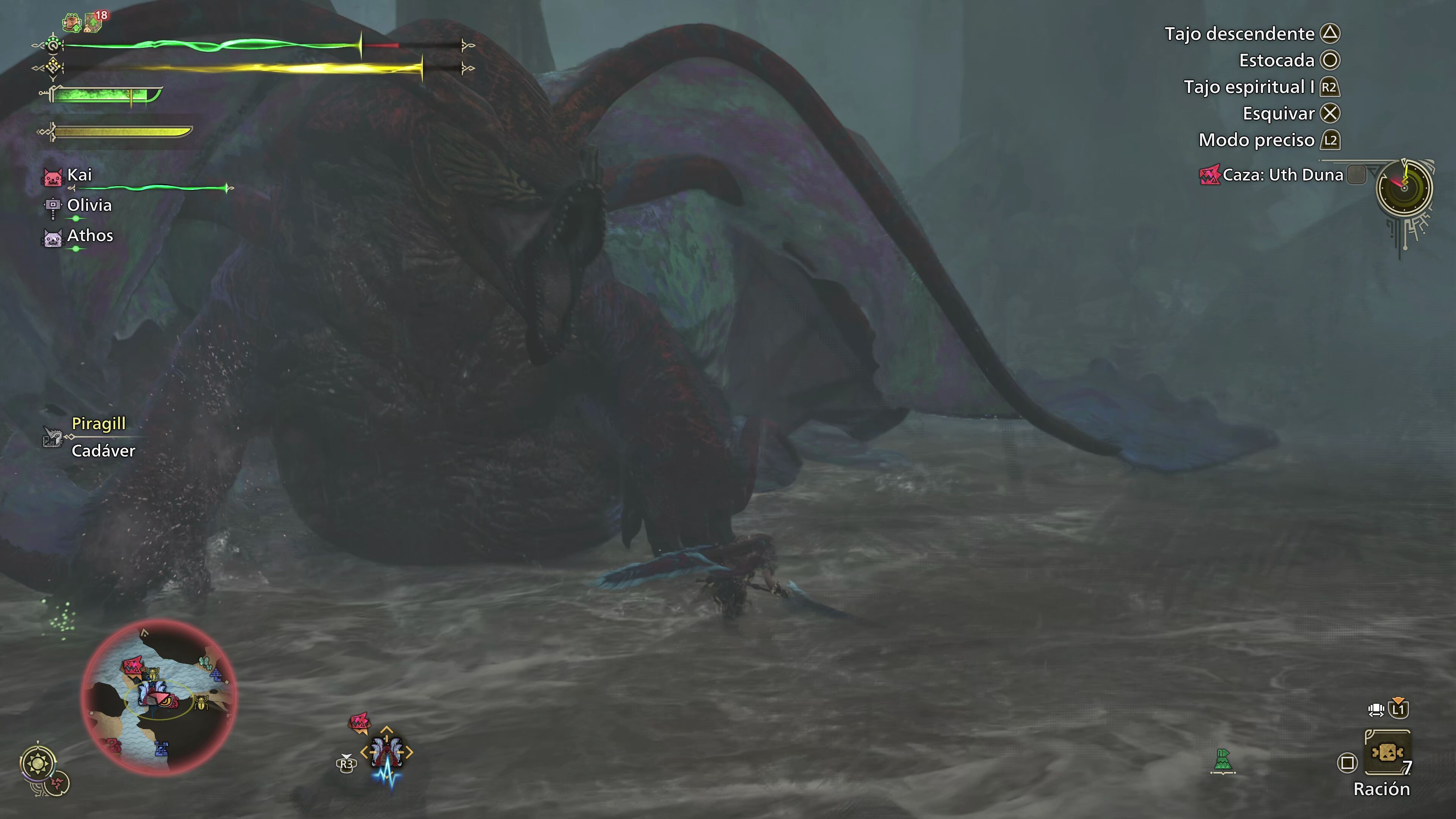 Es una mecánica muy divertida que nos ha gustado mucho, ya que además todas las armas pueden aprovechar las heridas para obtener diversas ventajas al explotarlas, como, por ejemplo, subir el nivel de espíritu de la Espada Larga, aportando así un toque estratégico a las contiendas que además es muy coherente con los encarnizados encuentros en los que nos vemos inmersos. Eso sí, creemos que el sistema necesita algunos ajustes de equilibrio, ya que ahora mismo facilita las cosas a unos niveles inimaginables, con monstruos que han sido incapaces de volver a levantarse una vez empezamos a abrirles heridas y explotarlas, pues en los segundos que quedan aturdidos retorciéndose de dolor, suele ser relativamente fácil abrirles otra.