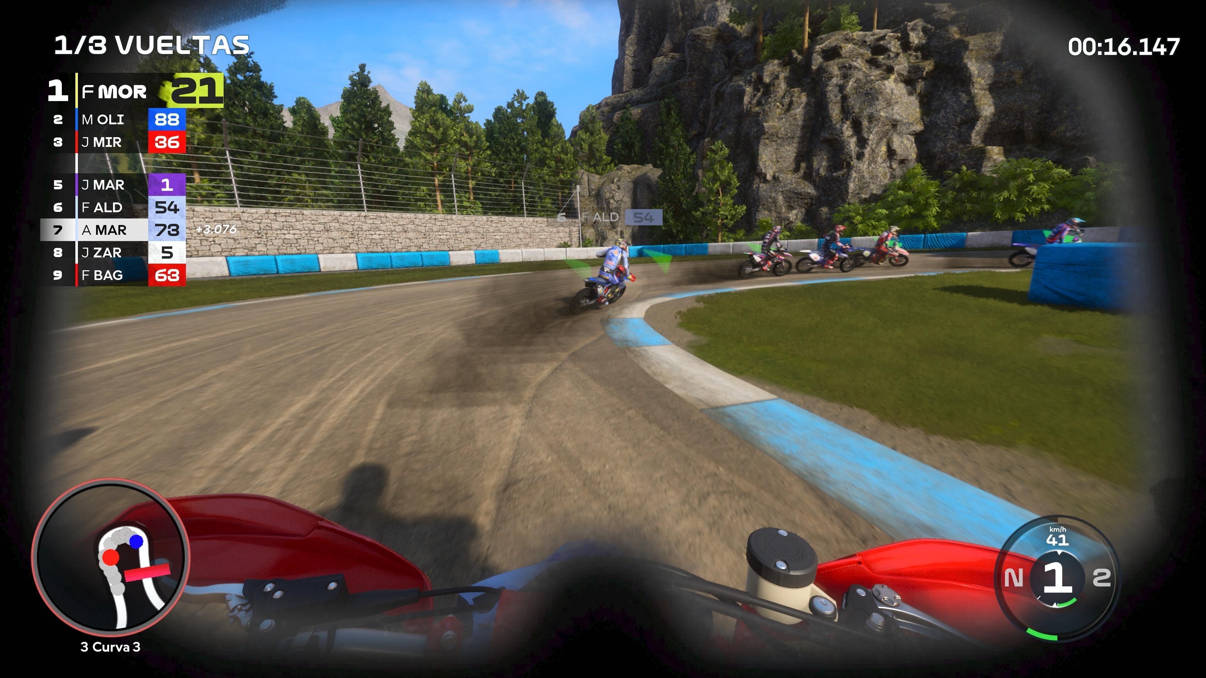 ¿Hay algo nuevo que reseñar en modos? El modo trayectoria recibe algunos cambios, con la opción de empezar en cualquier categoría, de buscar rivalidades (lo que afectará a su comportamiento en carrera), ganar reputación y desarrollar una moto que nos lleve a la cima del podio, pidiendo mejoras a los ingenieros y prioridades en la inversión que vayan en la dirección deseada, por lo que en teoría cualquier moto puede reinar en términos de potencia con las decisiones correctas. También hay sesiones de entrenamiento en nuevas disciplinas, lo que nos lleva a hablar de otra de las novedades: Race Off.