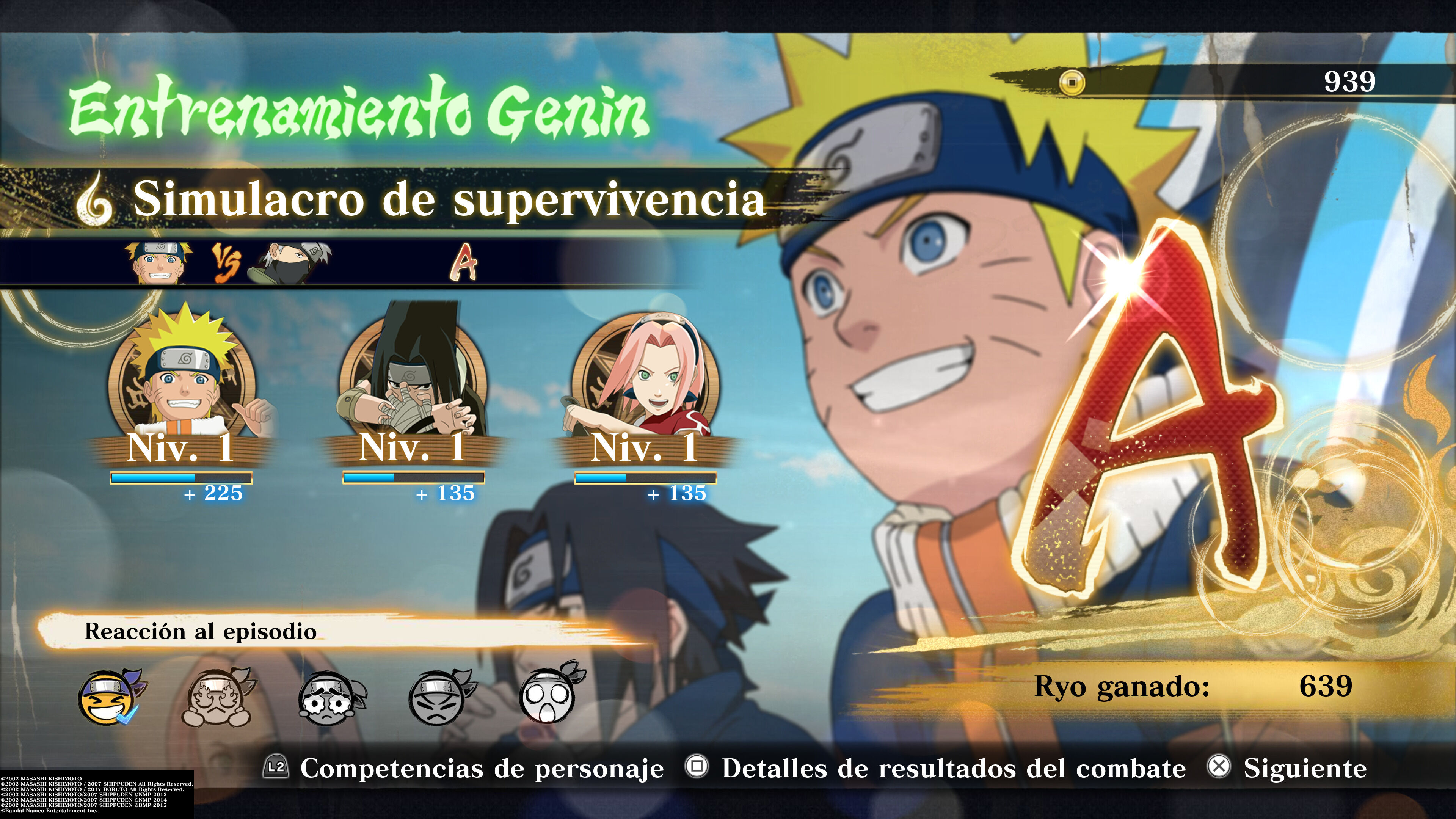 Al final de cada episodio podrás votar con un emoticono tu reacción a los acontecimientos y comprobar la opinión del resto de jugadores, y guarda un registro de los rangos S obtenidos. También, completando los requisitos de bonificación de cada combate –ganar con más de un porcentaje de vida, ejecutar un movimiento concreto- desbloqueamos algunos extras de coleccionismo y elementos de personalización, de manera que una cosa es simplemente terminar el modo y otra exprimirlo al máximo.