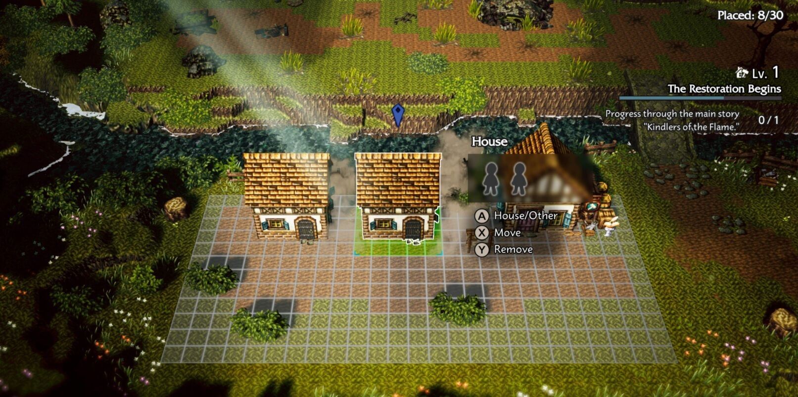 Más allá de contar con una excelente presentación visual y sonora, Octopath Traveler 0 no sería un digno sucesor de sus antecesores si no contase con una historia que estuviese a la altura de las circunstancias. En este caso, y pese a lo que podríamos esperar de un título nacido para ser disfrutado en dispositivos móviles, Kidera ha planteado un sistema distinto al que venía empleando la saga hasta la fecha, dejando atrás el concepto de narrar la trama a través de un número determinado de personajes para centrarse en un estilo más corriente, por así llamarlo. Esto se debe a varios factores. Para empezar, se ha puesto especial énfasis en la reconstrucción de Wishvale, el pueblo natal de nuestro héroe (que podremos personalizar con algunos matices al comenzar la aventura). Esto sirve como excusa para plantear una mecánica de gestión mediante la construcción de edificios variados, los cuales nos permitirán ir ampliando el espectro de posibilidades de nuestro grupo de guerreros.