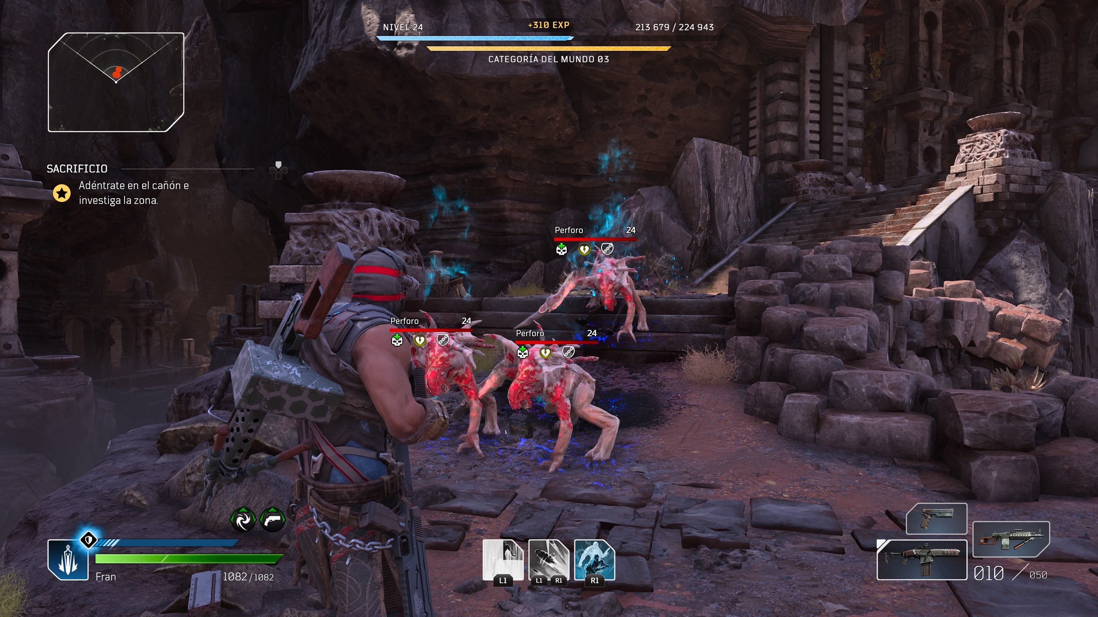 Como en aquel, en los mejores momentos es necesario estudiar el campo de batalla, priorizar objetivos y avanzar con cabeza de cobertura a cobertura. Pero también por otros aspectos que casi parecen un calco: la cámara del personaje al correr intenta simular la rotundidad de la del juego de Epic Games, el borbotón de sangre en el que estallan los enemigos al reventarlos con una escopeta es muy parecido y la animación al parapetarse es inconfundible (aunque no entendemos por qué se ha puesto un botón para cubrirse y otro para esquivar y saltar por la cobertura; nos llevó un buen tiempo acostumbrarnos a esto).