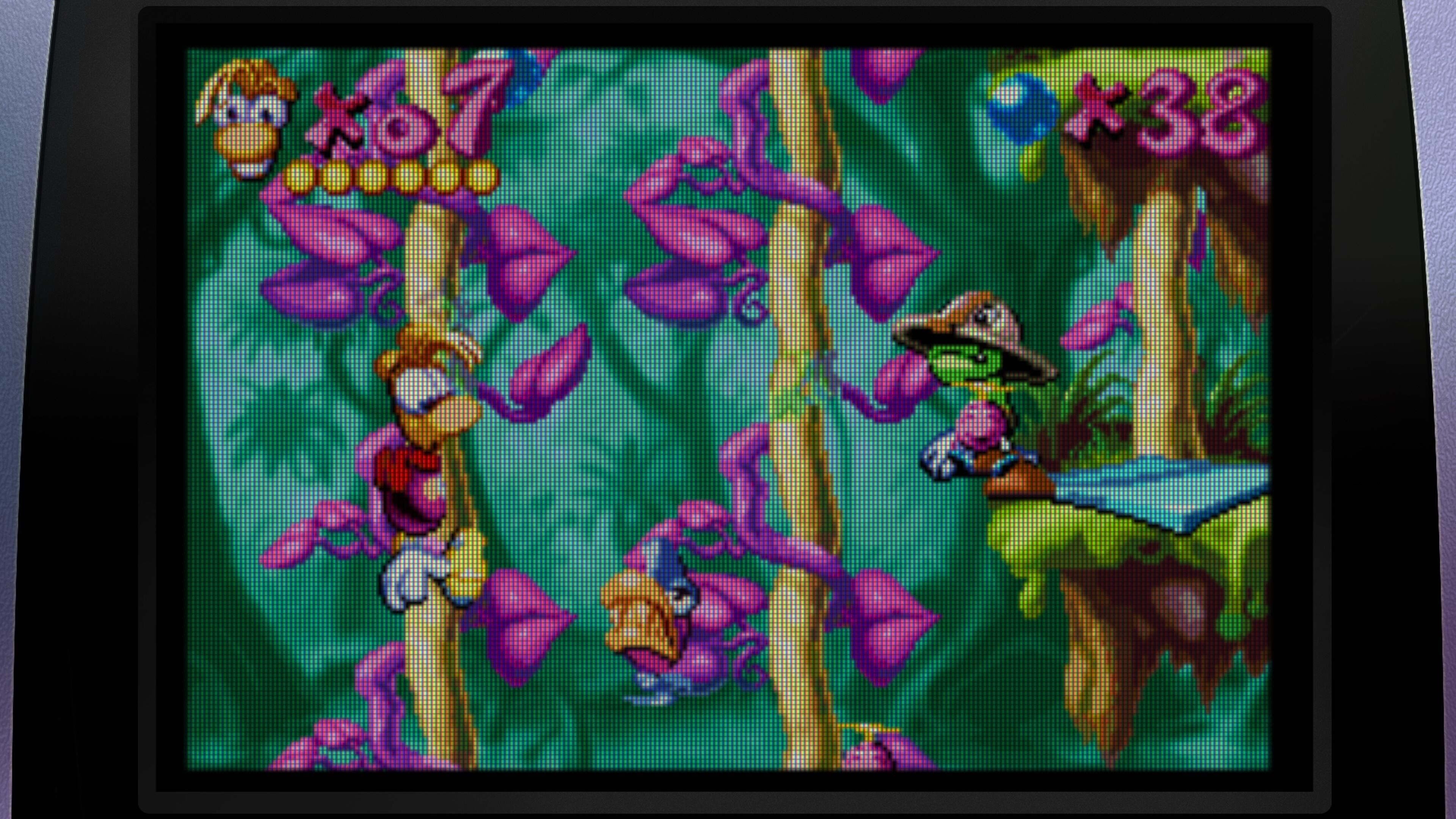 En lo que respecta a las diferentes versiones que incluye, para nosotros la mejor es, sin duda, la de PlayStation: más y mejores efectos visuales, una paleta de colores mucho más vibrante que las del resto, mejor sonido y un formato de pantalla óptimo que no hace recortes de ningún tipo en nuestro campo de visión, lo que ayuda a anticiparse a muchos peligros. Además, cuenta con la colocación de secretos, vidas y enemigos más equilibrada, en nuestra opinión. Si solo vais a jugar a una, os recomendamos que sea esta, aunque no cuente con el minijuego Ray Breakout.