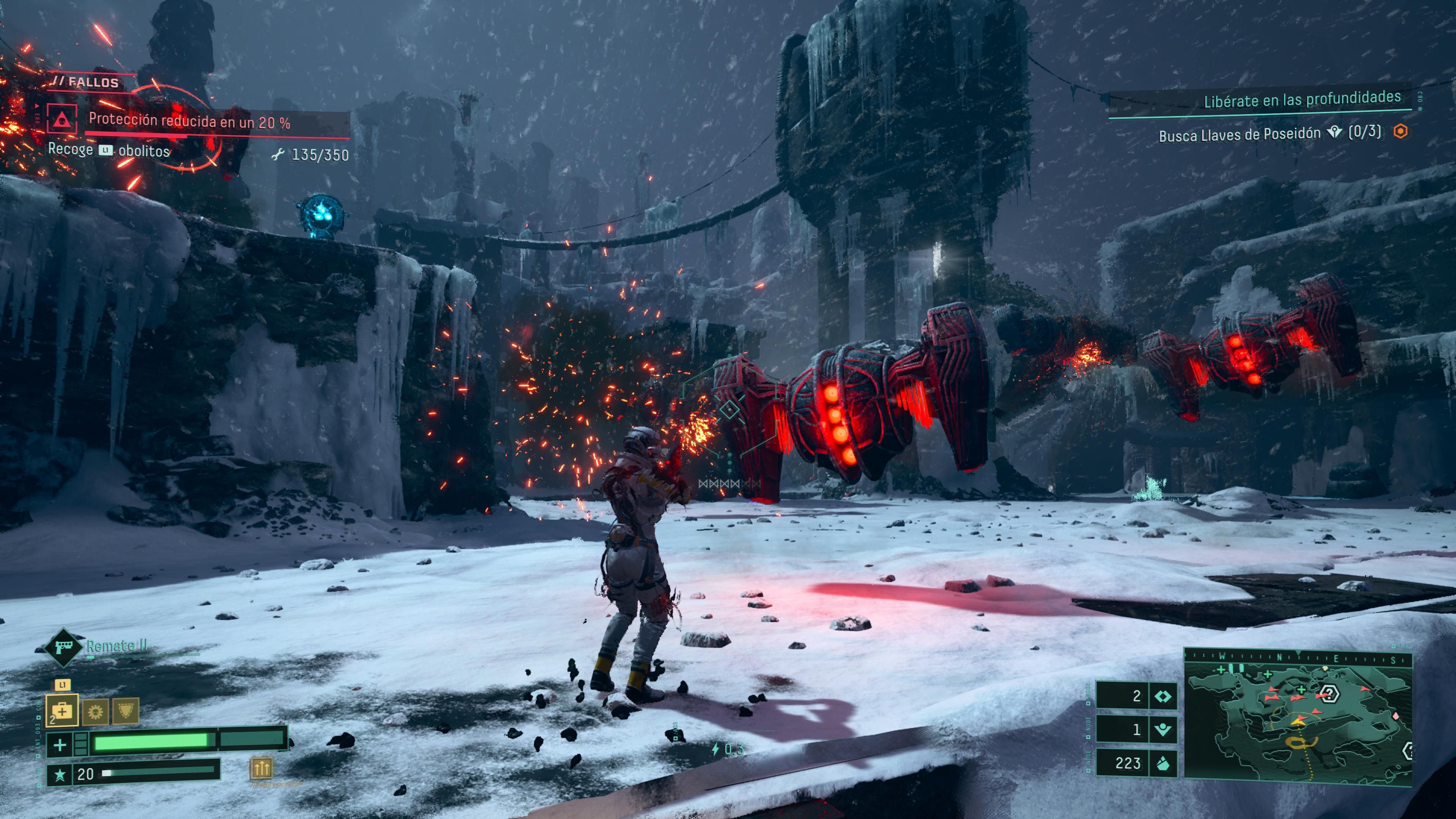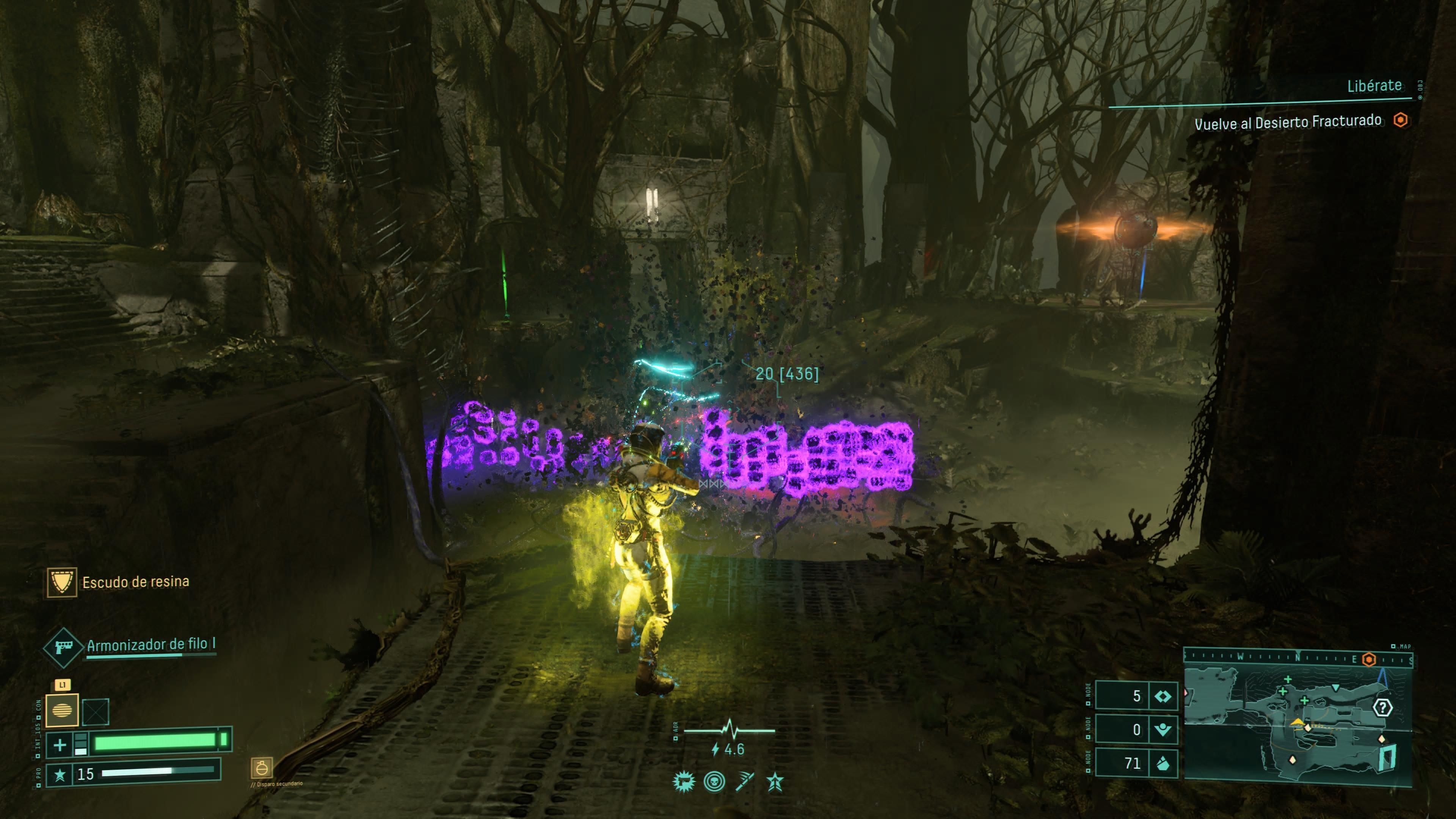 A pesar de todas estas virtudes, la auténtica estrella de Returnal la tenemos en sus tiroteos. Si hay algo que nos queda claro al ponernos a los mandos es que esto es, ante todo, un juego de Housemarque, algo que se nota en unos controles precisos hasta decir basta, en un desarrollo frenético e intenso de la acción, en unas armas que son todo un gustazo a la hora de disparar con ellas y en unas mecánicas y rutinas enemigas muy variadas que, por lo general, acabarán llenando la pantalla de toda clase de proyectiles y rayos láser que deberemos esquivar, obligándonos a que siempre estemos en movimiento para sobrevivir. Es uno de esos pocos títulos que consiguen que el simple hecho de apretar el gatillo sea una experiencia fantástica, algo que se ve reforzado por el diseño tan vertical que suelen tener los escenarios y la alta movilidad de Selene, lo que acaba dando forma a unas batallas tan espectaculares como divertidas en las que no tendremos ni un solo segundo de respiro mientras "plataformeamos" y liquidamos a todo lo que se mueva, algo que alcanza su máximo esplendor a la hora de hacer frente a unos jefes con multitud de fases y mecánicas distintas.Un roguelite algo corto
