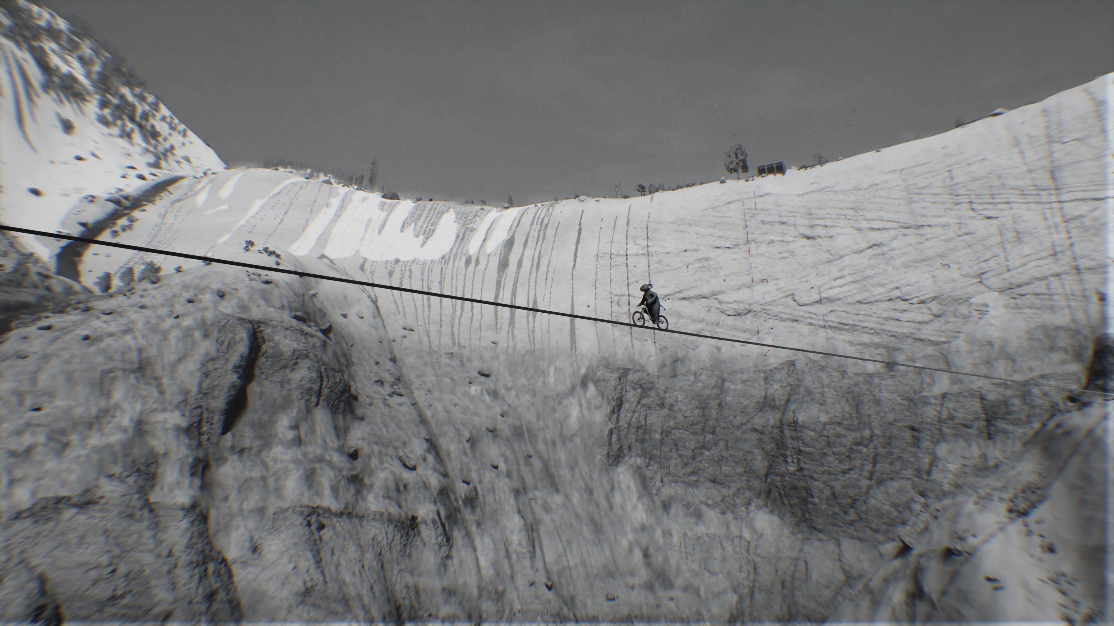 Tanto el escenario que podemos explorar libremente como las competiciones propiamente dichas tienen un diseño sorprendentemente bueno. Jugamos en un vasto sandbox plagado de deportistas (a veces jugadores reales, otras veces IA) que se entrecruzan por nuestro camino haciendo cabriolas o despeñándose de forma cómica mientras nosotros avanzamos buscando nuevas cosas que hacer y, por suerte, Riders Republics está lleno de ellas. Ya no sólo hablamos de actividades como tal, sino de sitios concretos que claramente están diseñados para desafiarnos: por poner un ejemplo, escondido en el mapa hay un cable que cruza un enorme cañón, una pequeña pasarela por la que podemos cruzar en bici para completar un reto que probablemente no habríamos encontrado de otra forma que no fuese la simple exploración del mapa.