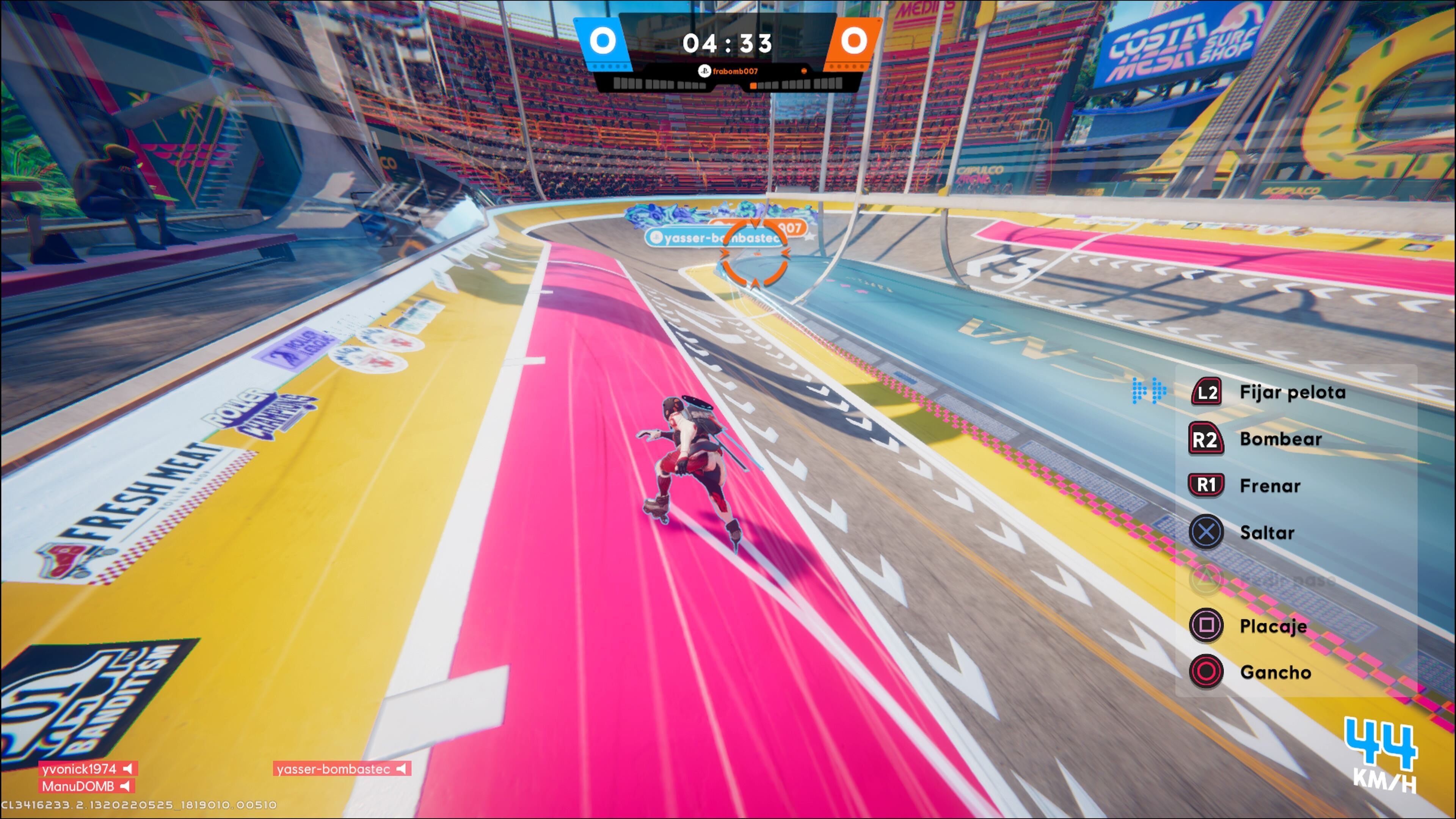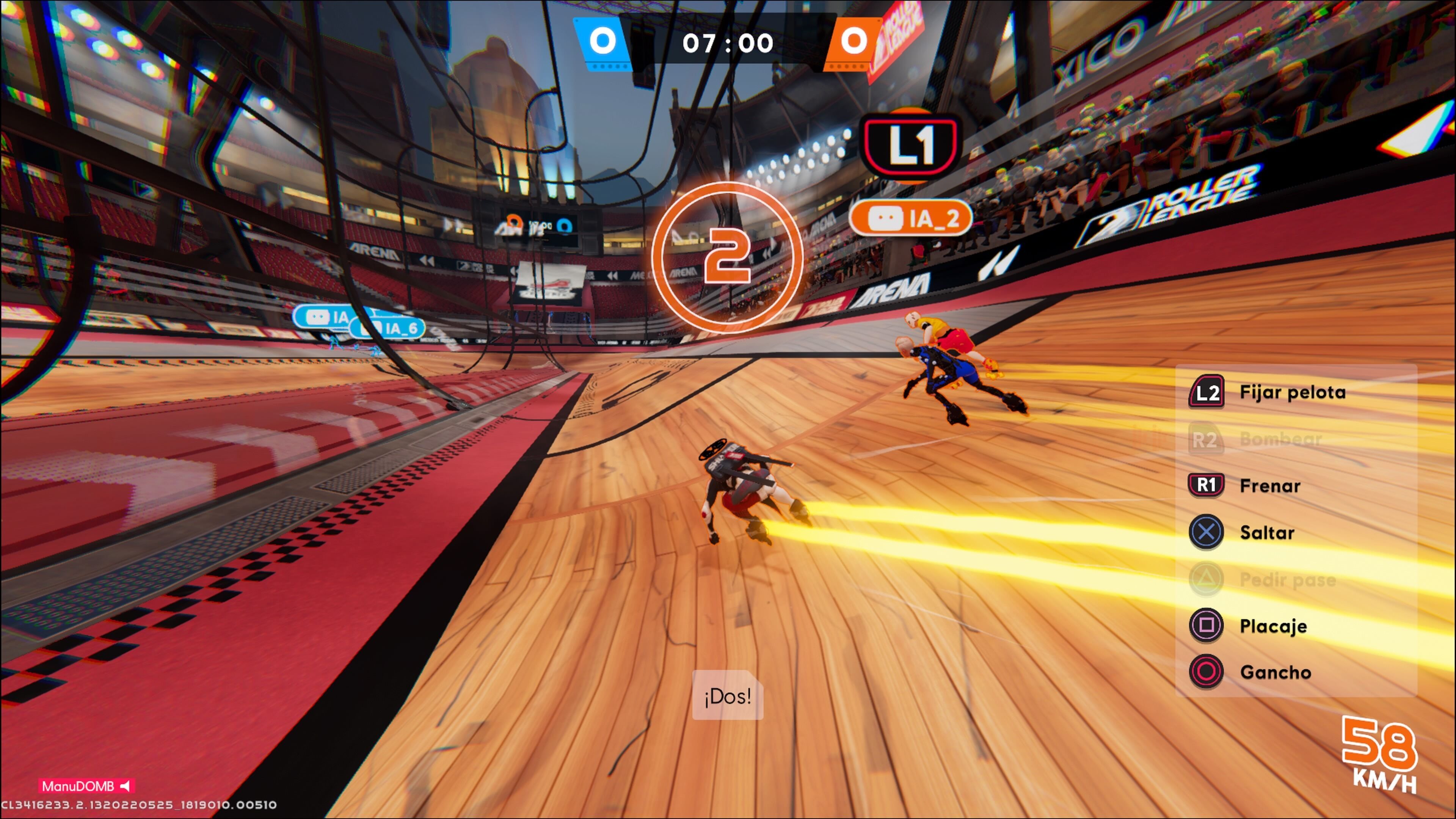 Al menos en las partidas que hemos jugado, el ritmo de Roller Champions es frenético, quizás incluso más de lo que el propio concepto puede soportar. Hay una sensación de desorden que contrasta con las partidas con el flujo de las partidas personalizadas en las que competimos contra bots (con una inteligencia artificial bastante básica, dicho sea de paso). Es fácil que los enfrentamientos se conviertan en un batiburrillo de placajes entre jugadores, quedando la pelota más tiempo en el suelo que en manos de los patinadores. Prueba de ello es también que casi ninguno de los partidos que hemos jugado ha acabado por alcanzar los cinco puntos, sino por el propio límite de tiempo.