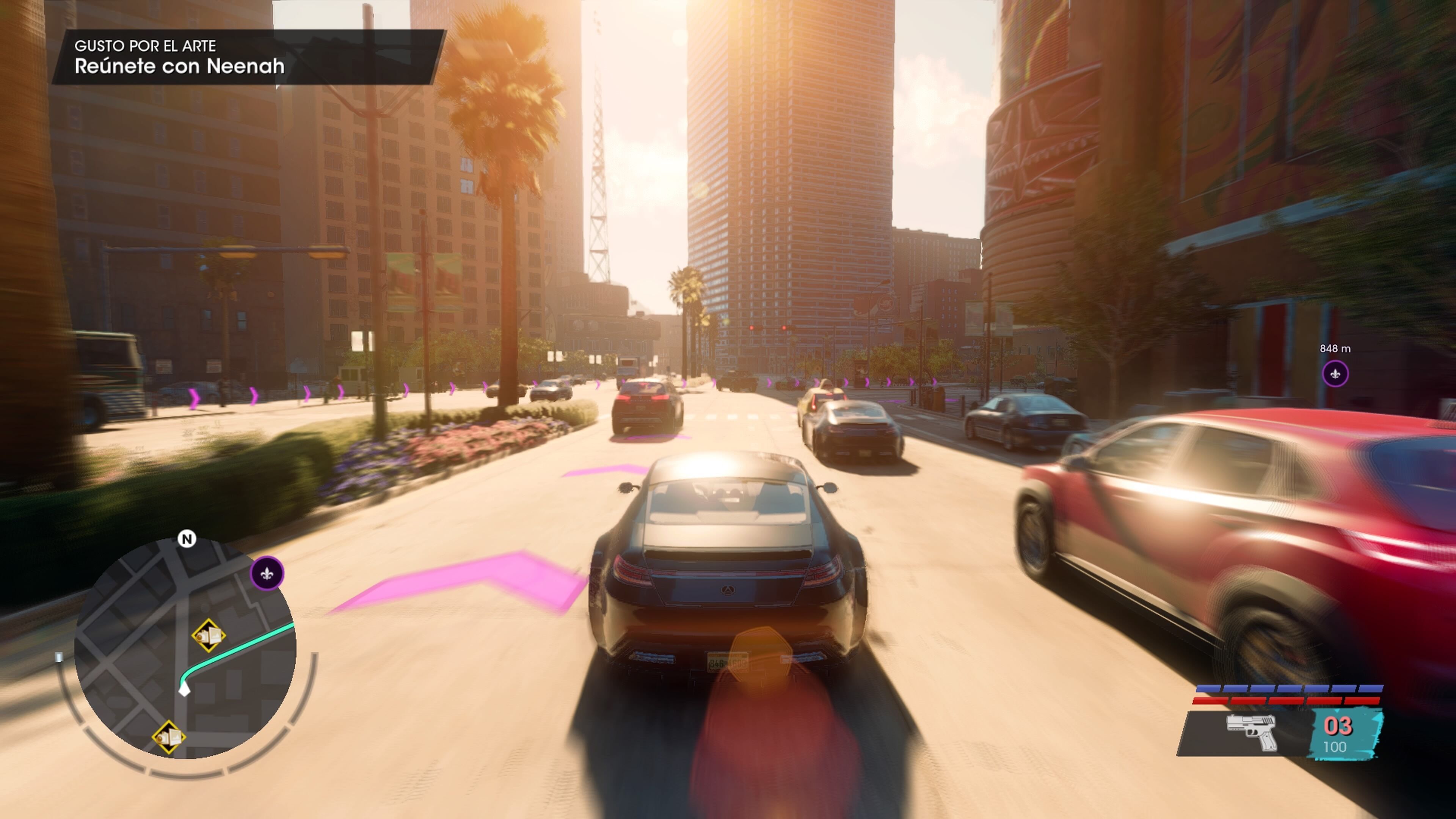 Santo Ileso es un protagonista más, una amalgama de ambientes modernos, rurales, zonas montañosas, lagos... Es cierto que el mapa no derrocha demasiada vida en su población, no esperes un detalle minucioso por metro cuadrado ni el comportamiento de sus habitantes al más puro estilo Red Dead Redemption 2, pero no es eso lo que busca este juego de acción que, desde muy pronto, nos hará pisar el pedal, apretar el gatillo y preguntar después.