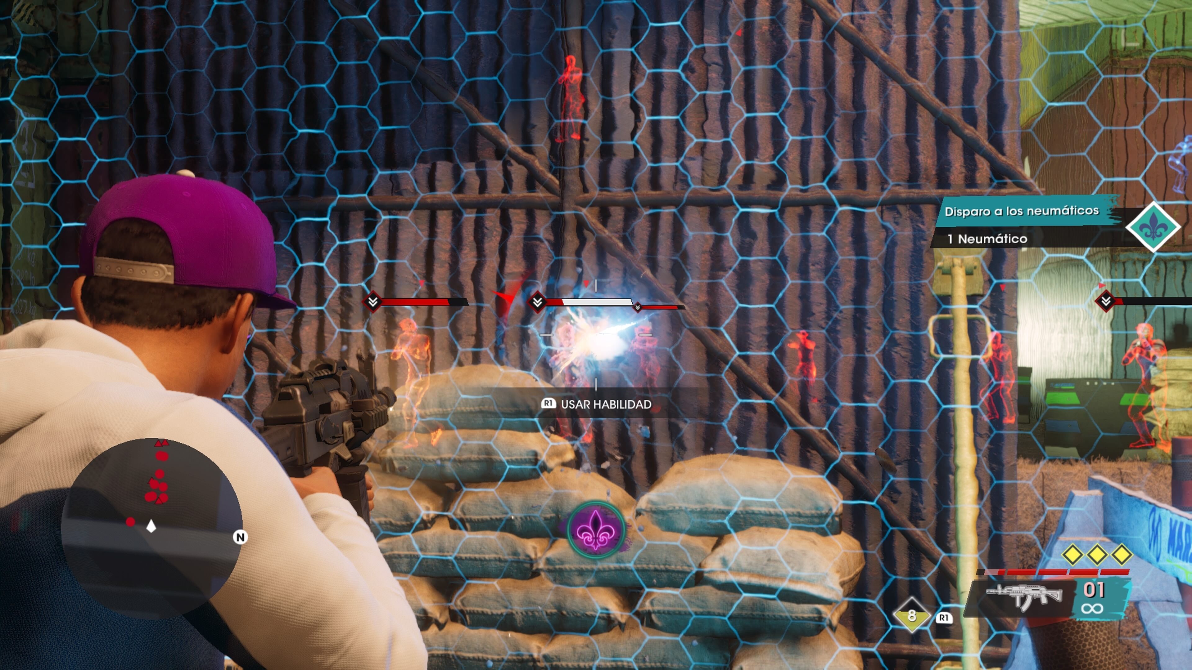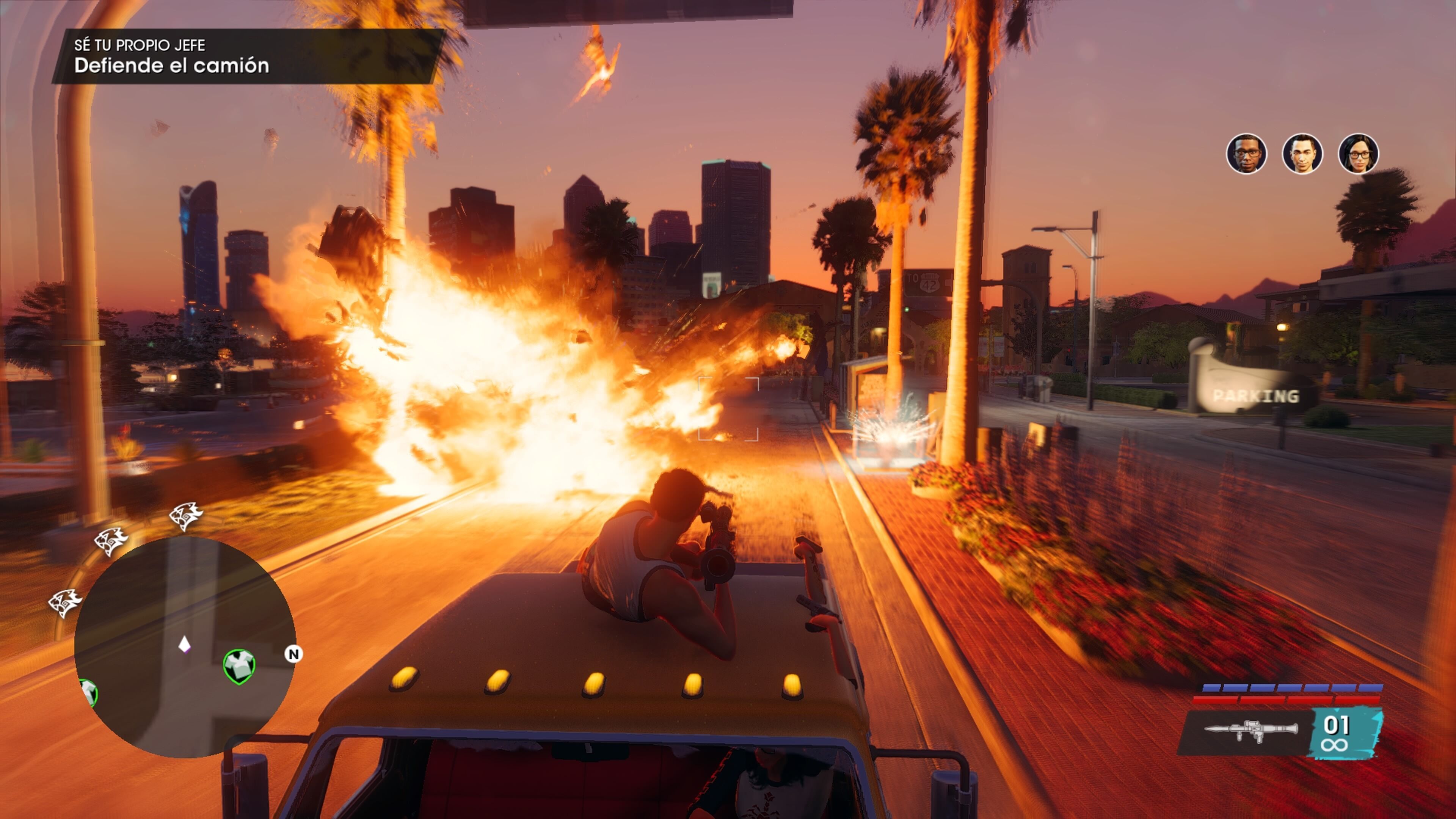 Estamos ante un mundo abierto de manual donde las misiones nos enfrentarán con alguna de las bandas que pueblan Santo Ileso. Estas tareas se mueven entre dos aguas de la historia: en ocasiones son completamente absurdas, como ir a buscar comida rápida por el juguete de regalo que incluye –pero acabaremos en una loca persecución por las calles- o participar en una sesión de rol, y otras un poco más serias, como rescatar a un compañero secuestrado o alguien preso en una cárcel –con diálogos y escenas propias de una película de Fast & Furious-. Todas tienen en común que se resolverán apretando el gatillo y/o con una persecución en vehículos, pero al menos la historia se las ingenia para que las situaciones den la sensación de ser variadas. Es un diseño muy típico con oleadas de enemigos y algún rival más fuerte que la media para amedrentar; en la mayoría de ocasiones está bien llevado por su argumento desenfadado, no necesitas más disculpa para vaciar el cargador.