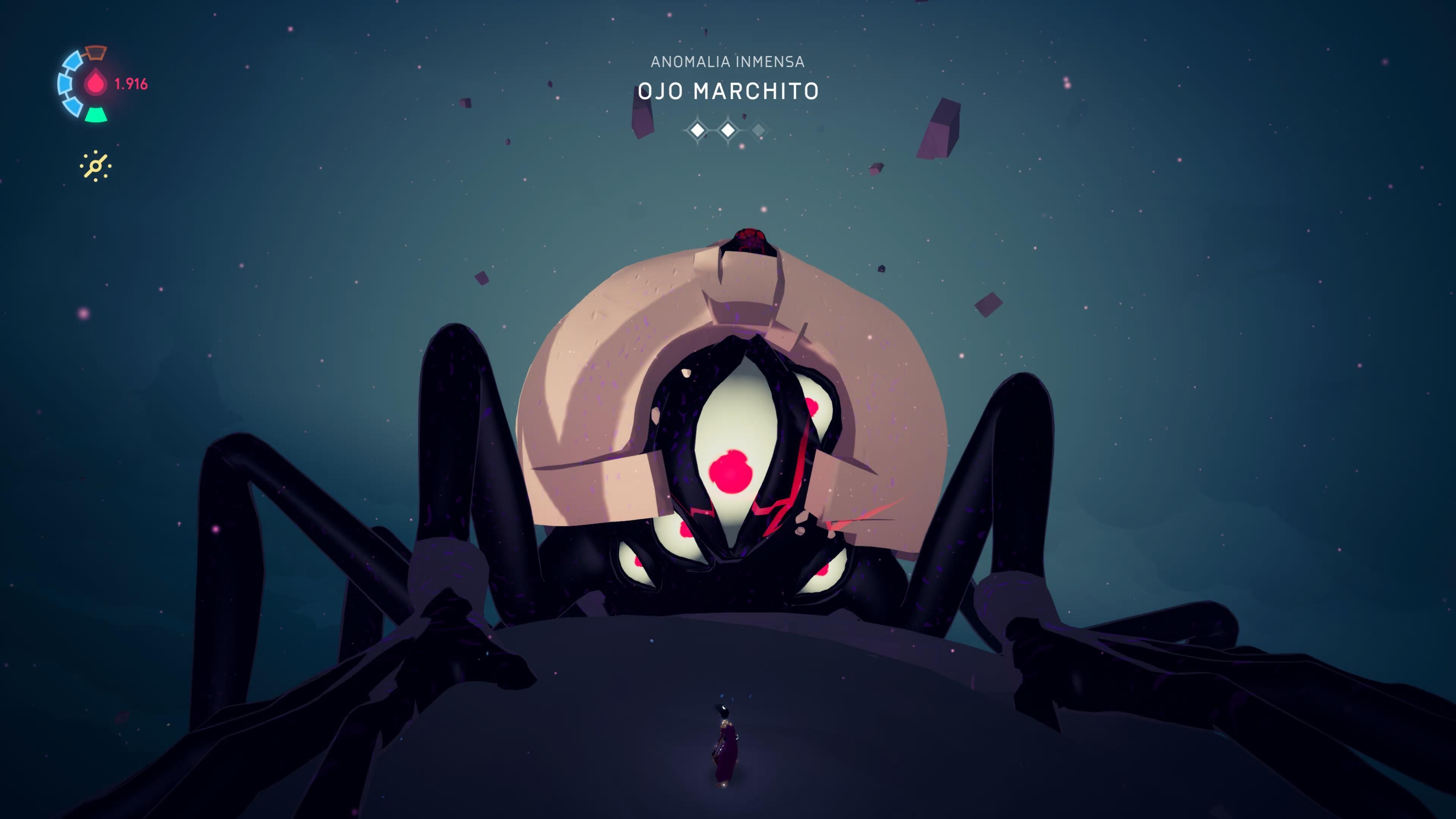 Lamentablemente, el título tiene una estructura demasiado encorsetada y predecible que hace que caiga en los mismos esquemas una y otra vez. Como dijimos antes, nuestro objetivo es visitar las diferentes regiones del Ultravacío para acabar con unos colosos, aunque no podremos combatir contra ellos hasta que destruyamos unos ojos que se encuentran ocultos por los escenarios. El proceso siempre es el mismo: llegas a una nueva zona (están todas interconectadas sin tiempos de carga), activas a tu asistente para que localice la ubicación de estos objetivos, llegas hasta ellos, rompes varios pilares a contrarreloj hasta exponer su punto débil y lo eliminas. Una vez entre en acción el jefe, simplemente deberemos buscar la manera de encaramarnos a él e iniciar una rutina similar mientras destruimos objetivos de forma secuencial, aunque con la diferencia de estar patinando sobre un ser colosal y en movimiento.