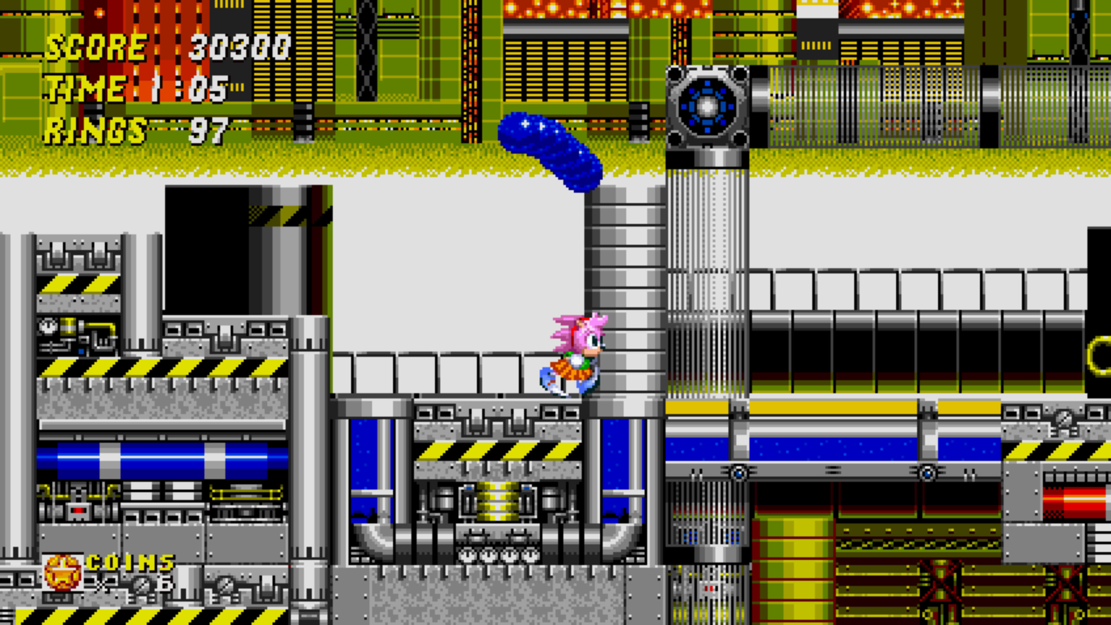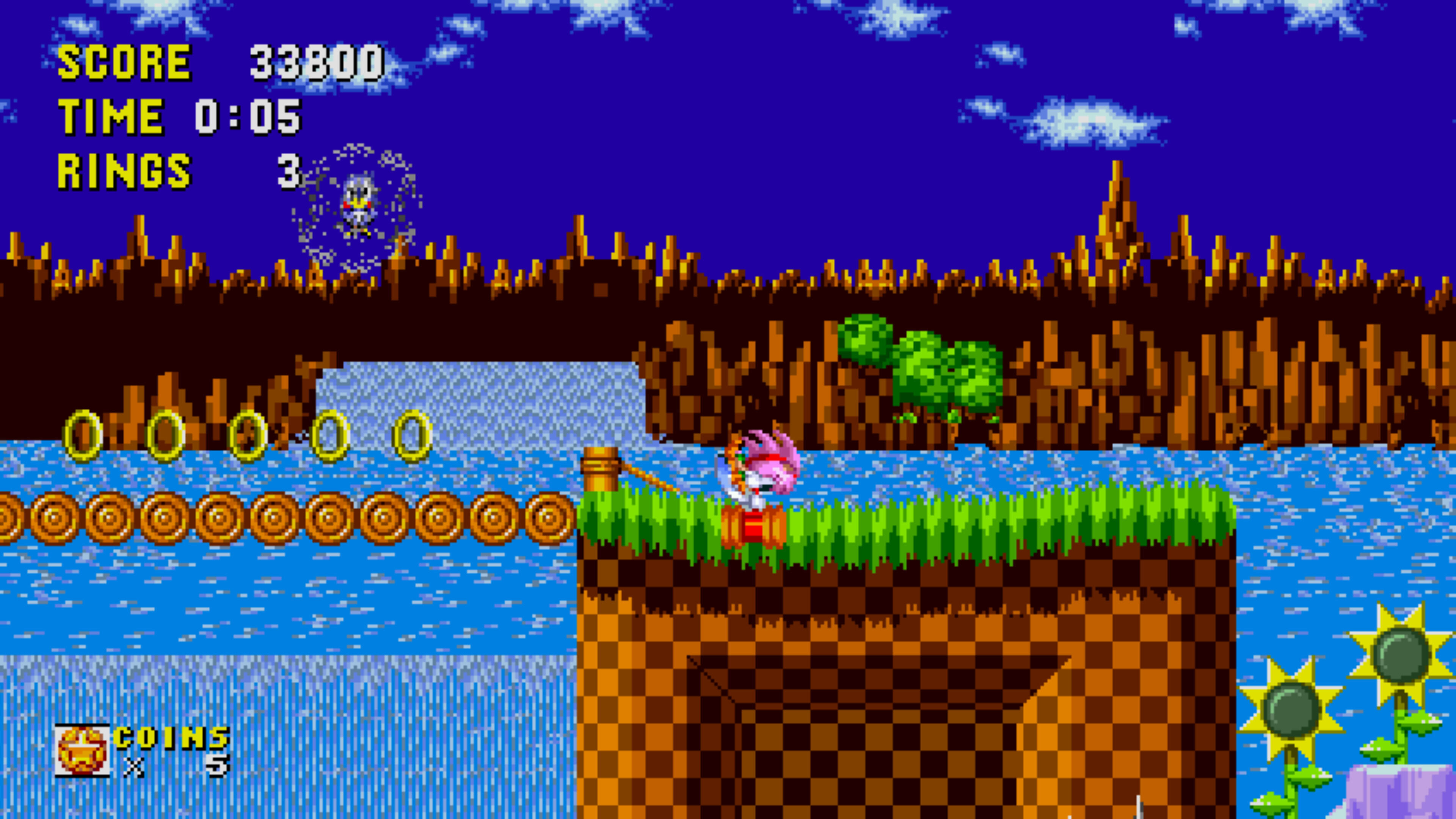 Lo primero que queremos mencionar es que, además de los nuevos contenidos, también se incluyen todos los descargables que se lanzaron para Sonic Origins, que no son muchos, pero que incluyen algunas cosas interesantes como las misiones extremas y el modo espejo. Si no las teníais, ahora os aparecerán por defecto. Lo más notable es la adición de Amy como personaje jugable en todos los títulos de la tetralogía original, y que añade una habilidad propia: pegar con el martillo, como no podía ser de otra manera. El ataque se realiza al pulsar el botón de saltar en el aire, haciendo que Amy golpee mientras gira, e incluso pudiendo prolongarlo brevemente tras aterrizar. No es nada revolucionario, pero la verdad es que nos ha gustado jugar con ella.