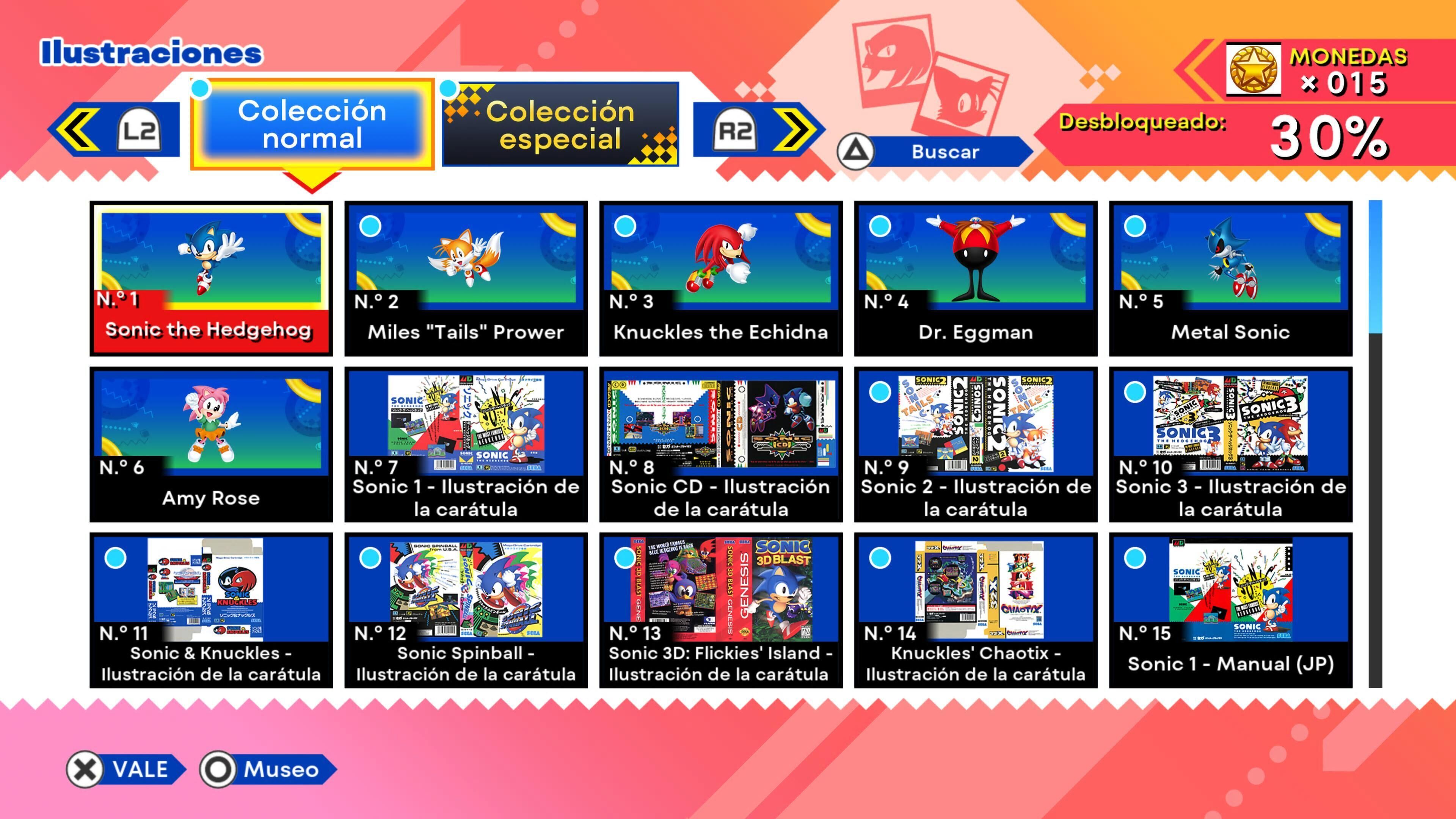 Algo que conviene destacar es que el recopilatorio nos ofrece varias formas distintas de disfrutar de estos juegazos, siendo las dos principales los modos Aniversario y Clásico. El primero nos permite jugar en panorámico y elimina el sistema de vidas, las cuales son sustituidas por unas monedas que podemos usar para desbloquear contenidos en la galería de extras y para reintentar las fases de bonus en el caso de que fallemos a la hora de conseguir una de las Esmeraldas del Caos. Además, si no estamos satisfechos con nuestro desempeño en un nivel podremos reiniciarlo desde el principio sin mayores problemas y también se nos dará acceso a ciertas adiciones no incluidas en los juegos originales, como poder jugar con Tails o Knuckles en la primera entrega o con estos dos personajes a la vez (controlando al equidna) en la segunda.