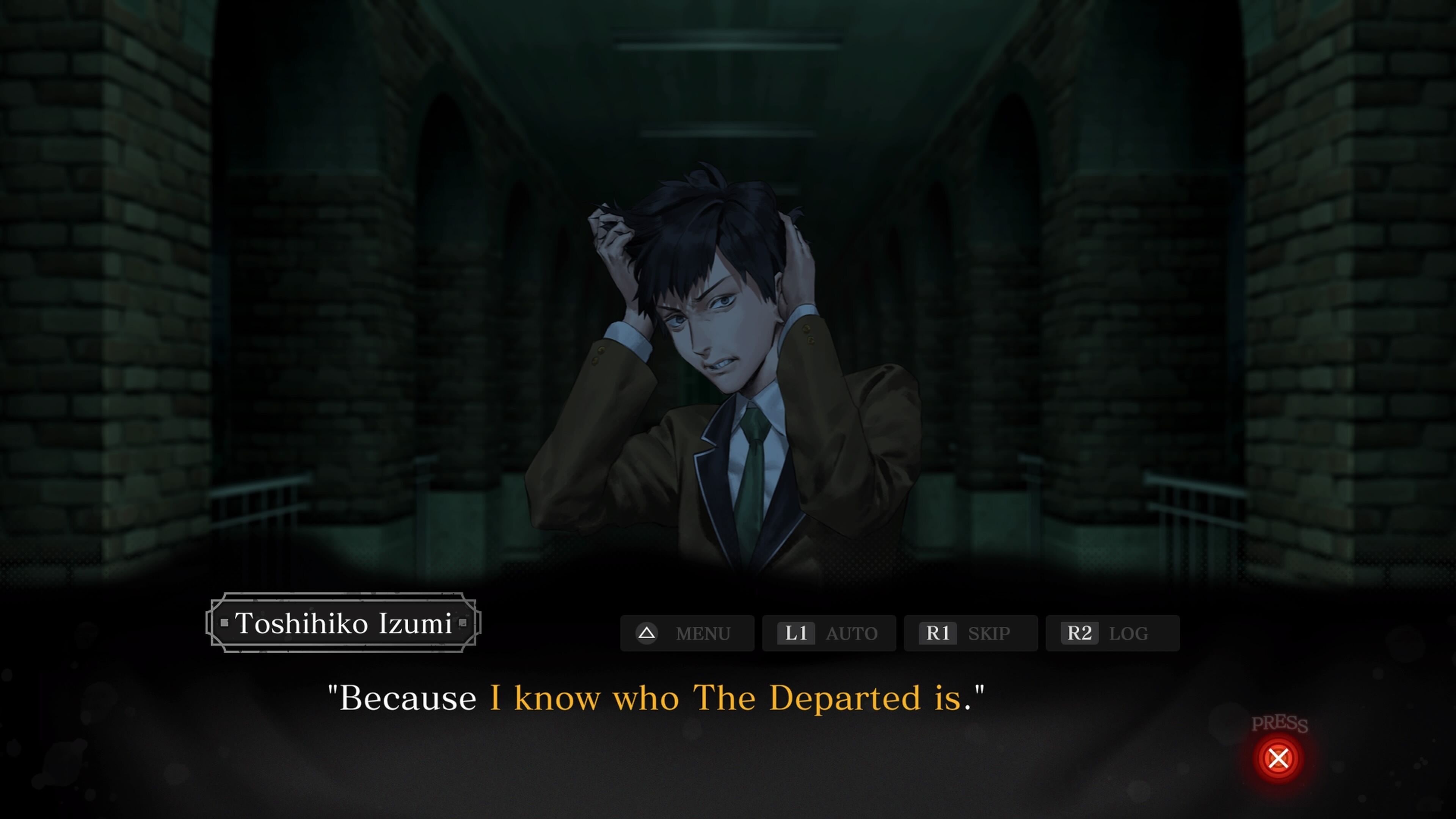 A nivel puramente superficial, la propuesta es clara: Yashiki es llamado por uno de sus ex-colegas del juego original para resolver el misterio detrás de desapariciones muy sospechosas relacionadas con un espíritu: La Difunta/The Departed. La historia comienza a partir de un caso concreto, el de Hanako del Retrete (no me lo estoy inventando; y sí, en inglés y en japonés siempre suena todo mejor), una chica que se suicidó y que ahora está atormentando, si no asesinando a los estudiantes de Konoehara. Desde ahí, comienza a explorar otro terreno y, como ya pasó con el original, esconde giros de guión que esconden el verdadero objetivo de la trama desde el principio.