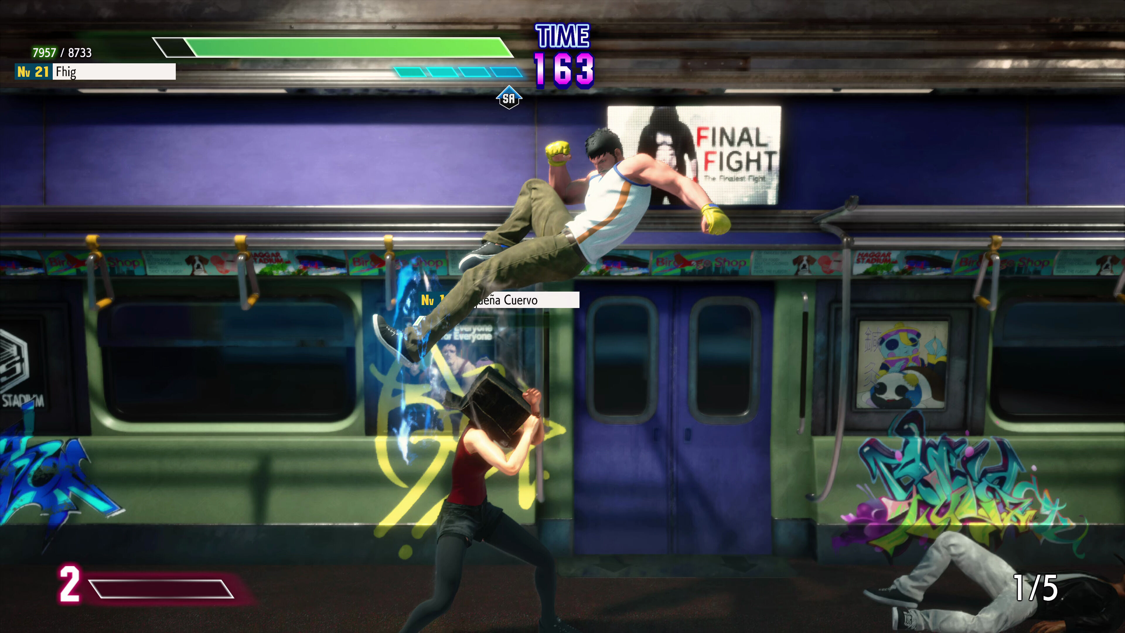 De este modo, nos tocará superar todo tipo de misiones, tanto principales como secundarias, para subir de nivel y conseguir nuevas piezas de equipo que mejoren nuestros atributos. Por el camino podremos desafiar a un duelo a casi cualquier personaje que veamos por las calles, encontrar a nuevos maestros (los personajes principales de Street Fighter 6) que nos enseñen sus estilos de pelea y sus técnicas especiales, usar ítems consumibles y hasta poner en práctica algunas habilidades de combate para llegar a lugares del mapa que de otro modo serían inaccesibles. Además, dependiendo de si exploramos por el día o por la noche, podremos participar en unos eventos u otros y si sois fans de Final Fight vais a disfrutar de muchísimo fan service.
