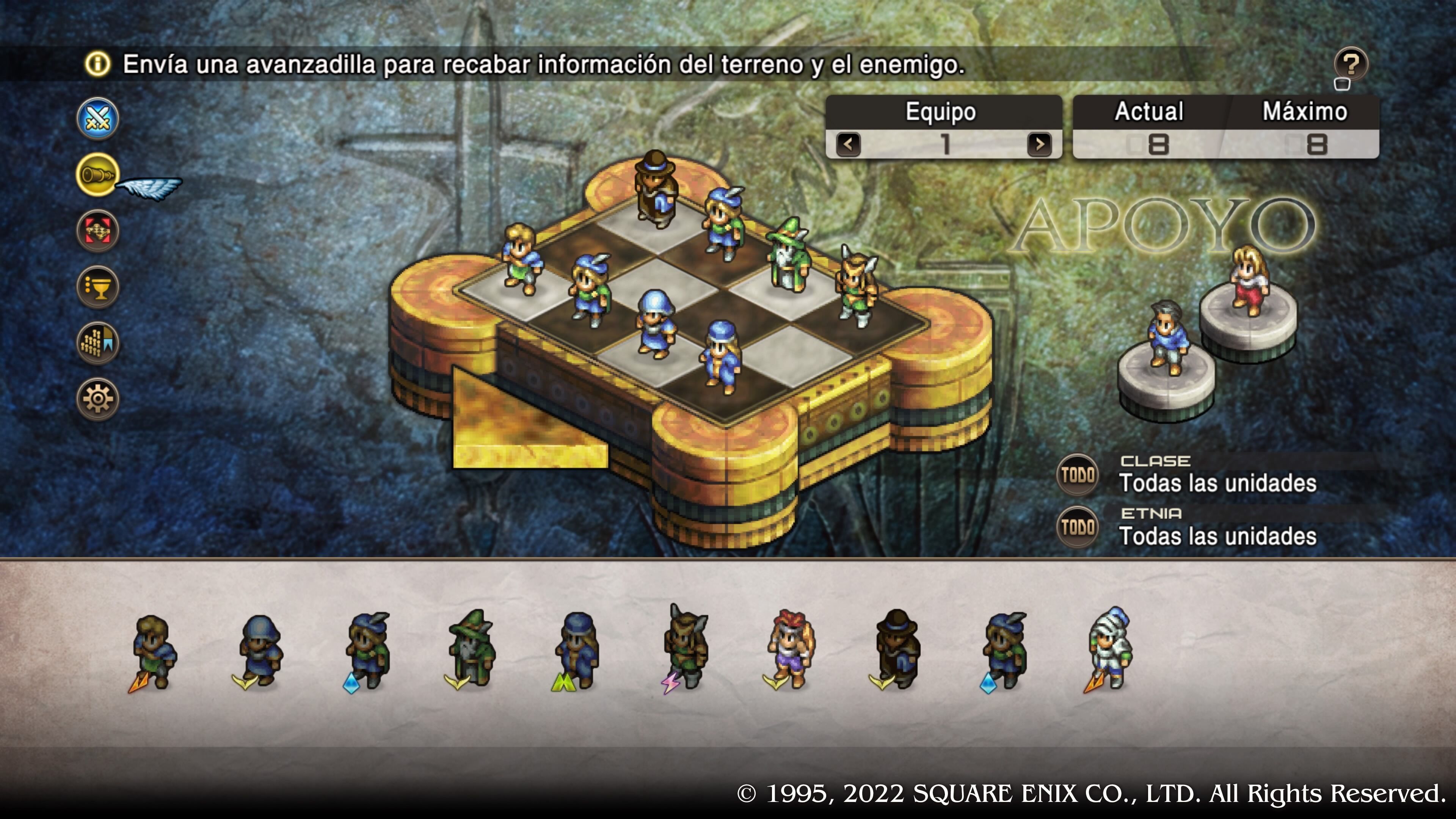 Hay muchísimas otras mejoras pequeñas pero bienvenidas que Square Enix no ha profundizado durante su promoción y que van más allá de los cambios en el progreso. El juego informa mejor sobre nuestros enemigos, sus afinidades elementales –y si estamos aprovechándolas bien-, hay nuevas habilidades y se identifican mejor en los menús, se reubica la interfaz durante el control de las unidades, pueden aparecer cartas con potenciadores o efectos negativos temporales durante el combate –lo que requiere desplazar a un personaje y quizás modificar nuestra estrategia inicial-, hay unas cuantas opciones más para hacer zoom en la pantalla, las tiendas también se han remozado, se eliminan los combates aleatorios del mapa y ahora podemos entrenar en las maniobras si se necesita mejorar el nivel -recomendable precisamente por la desaparición de batallas aleatorias-, y claro, también se añaden limitaciones para que no se abusen de los sistemas para crear unidades que arrollen a todo un batallón.