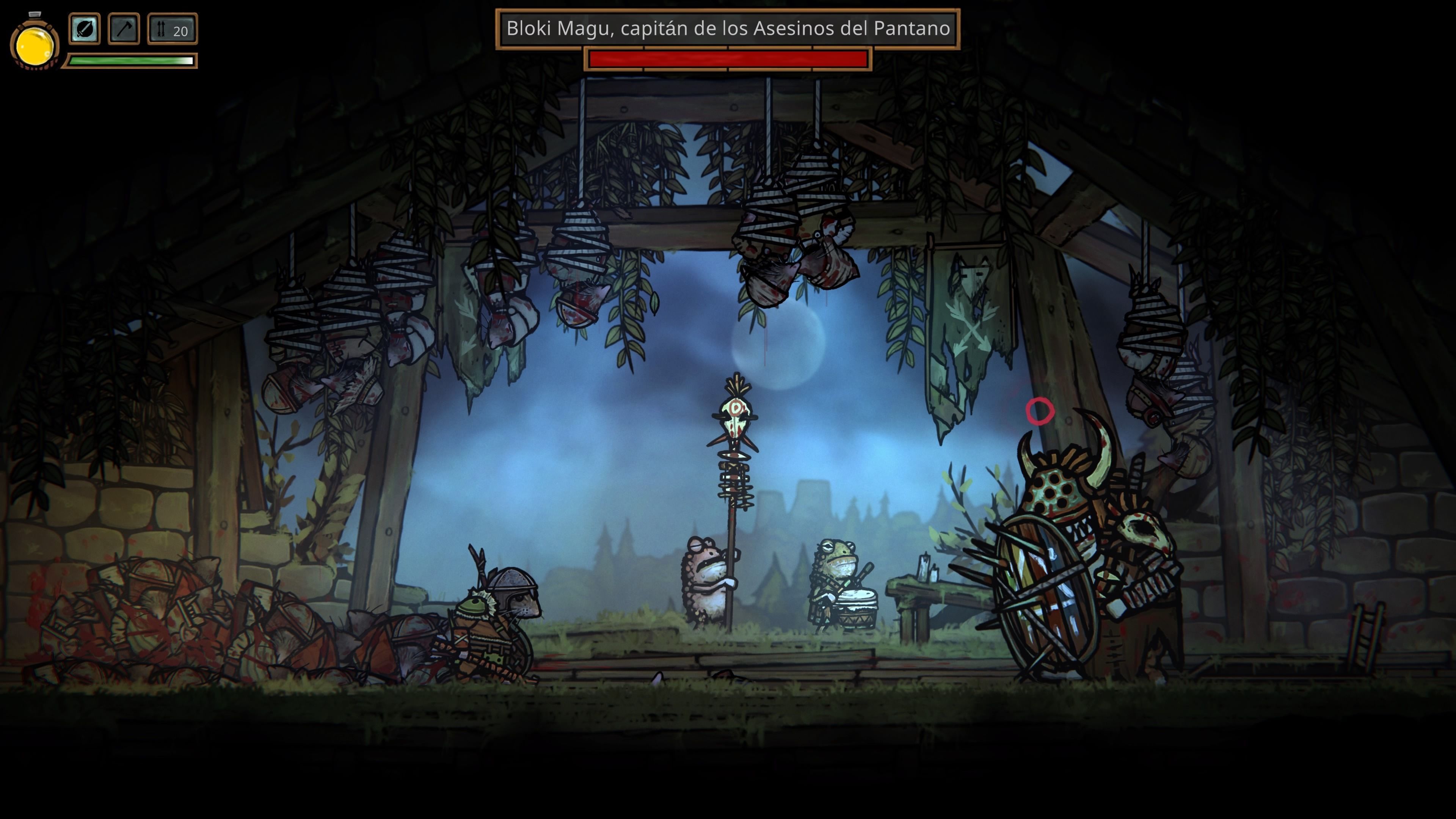 Tails of Iron siempre ofrece un desafío y el combate logra ese punto de satisfacción cuando derrotas a un jefe poderoso o el grupo de ranas, mosquitos y bichos que tantos problemas te ha dado. Hay una buena variedad de comportamientos entre enemigos –los arqueros son rápidos y se alejan de nuestra posición, otros van protegidos por escudos, etc.-, en ocasiones nos acompaña un aliado y si te despistas, tres golpes fuertes te mandan al otro barrio. ¿Habría pasado algo por incluir ajustes de dificultad? No, pero la desarrolladora ha preferido atraer al público de los Soul-slike sin muchas concesiones.