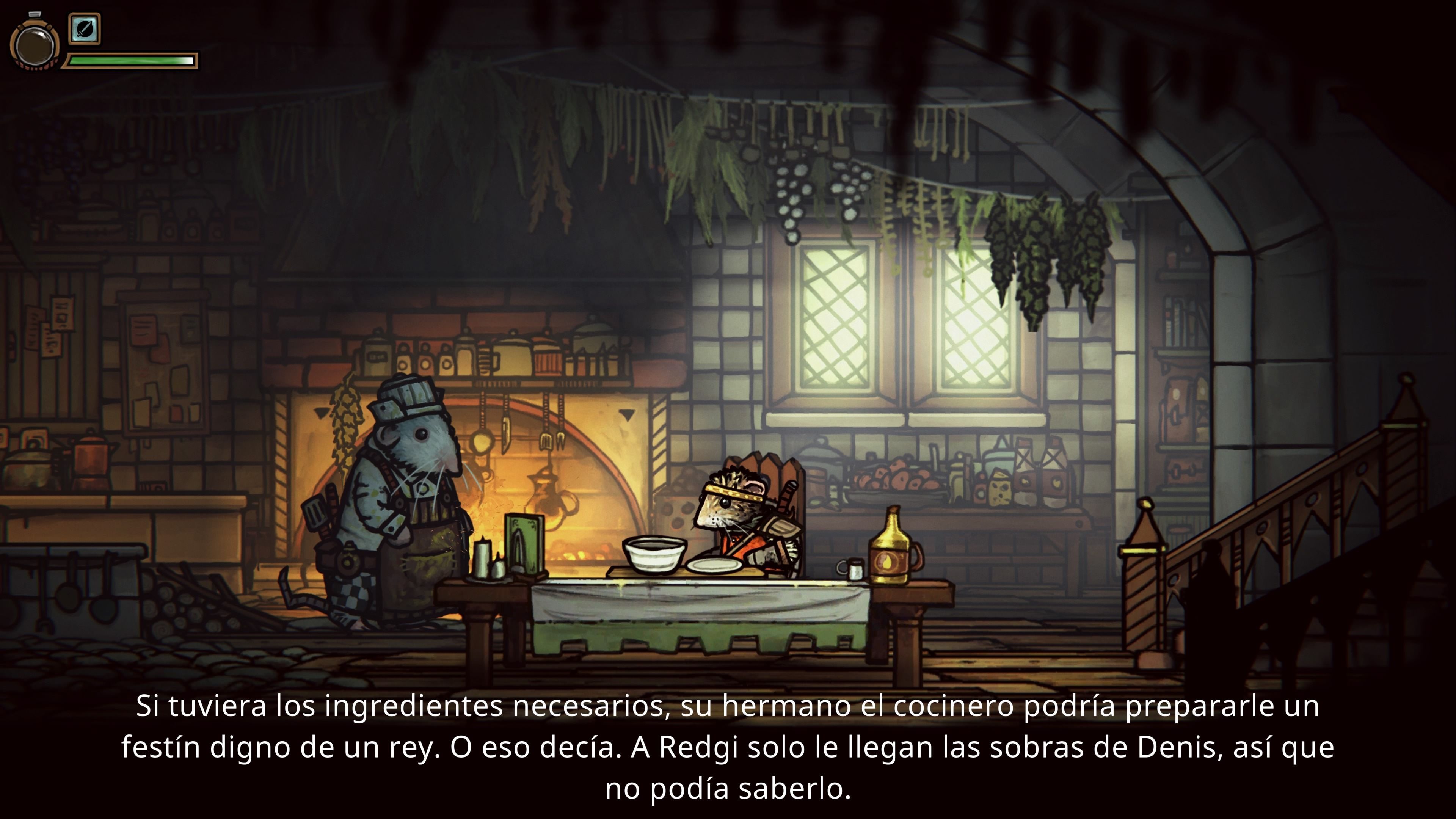 ¿Qué aspectos mejorables encontramos en esta aventura? Quizás el combate no es tan preciso como otros títulos de acción 2D, aquí tiende a ser "realista" y que notemos el peso de las armas. No es malo, pero puede que no sea del gusto de todos. Además, aunque los niveles de vez en cuando incluyen bifurcaciones y en ocasiones hay que volver a una zona para desbloquear una ruta antes inaccesible, no se siente un auténtico metroidvania, está bastante guiado. Por último, el combate aquí lo es todo: Redgi no destaca por ser ágil y salvo pequeños saltos sin dificultad alguna aquí no existe una jugabilidad de plataformas que requiera habilidad –algo que sí encontramos en gran parte de su competencia, como el reciente F.I.S.T.: Forged In Shadow Torch-. ¿Te gusta el combate que plantea? Estupendo. Pero fuera de eso, no hay mucho más. Tiene una duración aproximada de 10 horas –más dependiendo de nuestra pericia o las misiones opcionales-, que puede saber a poco para un RPG.