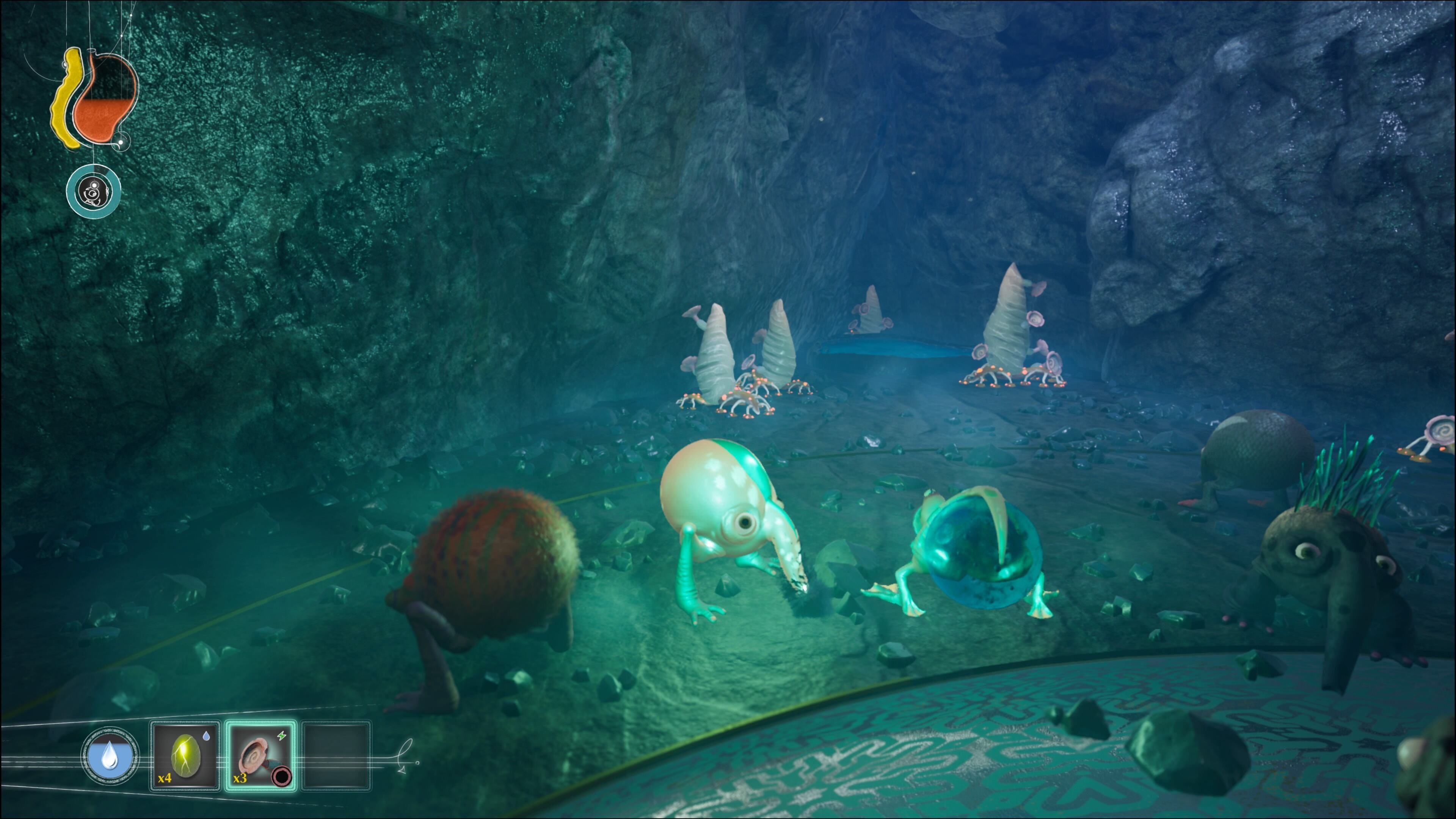 Estas habilidades a veces son complementarias y otras no, de ahí la importancia de que el grupo colabore para sobrevivir haciéndose más versátil con las mutaciones. La interacción con el entorno es clave para alcanzar este mismo fin, ya que si no investigamos los escenarios no encontraremos alimentos que absorber con la trompa e ingerir para hacer evolucionar a las criaturas. Evidentemente muchas de las mutaciones estarán colocadas de una manera clara al ser necesarias para progresar en la historia, pero muchas otras, completamente opcionales, estarán ocultas a simple vista, escondidas y disimuladas con otros ingredientes que sirven para mantener a raya la alimentación y la hidratación de los personajes.