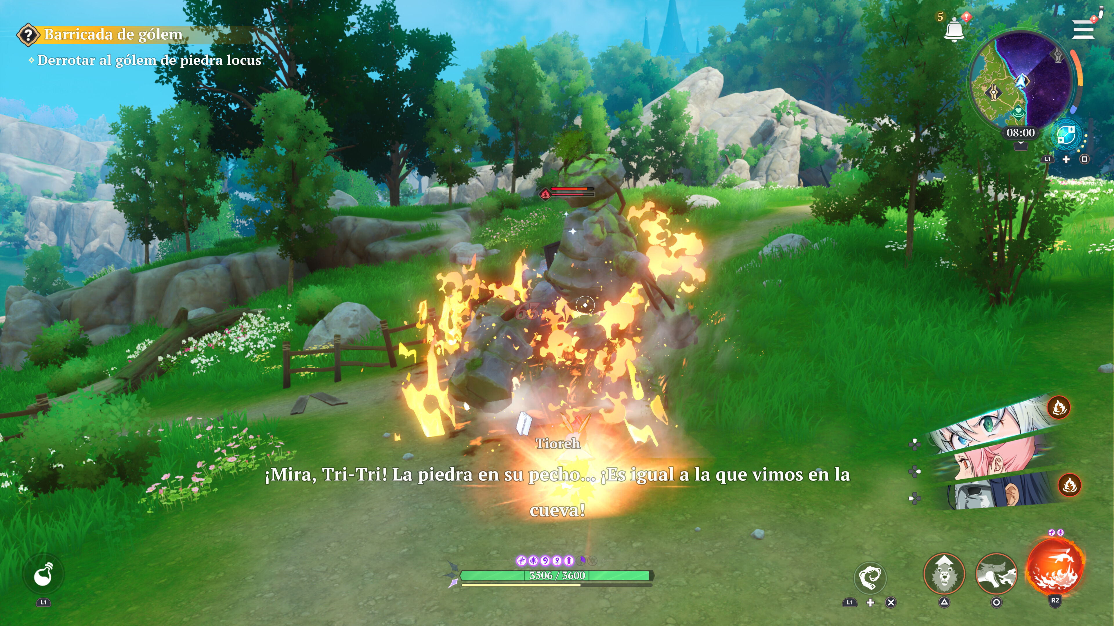El sistema de combate no trae grandes sorpresas, aunque esto podría facilitar el salto desde la competencia. Hay ataques normales y especiales, evasiones con su tiempo de inmunidad, habilidades -con un tiempo de recarga-, ataques definitivos o el sistema de ráfaga tras rellenar un indicador con ataques elementales que infringe daño adicional con ese elemento. En un pad, con la cruceta podemos cambiar de héroe entre los integrantes de nuestro equipo -comparten la misma barra de vida-, y si utilizamos una habilidad de relevo en un instante concreto de los enemigos, se activa el contraataque que deja a la criatura aturdida. Es un gameplay que te invita a rotar entre tus aliados y a luchar con inteligencia, no es un hack´s slash frenético ni tiene la velocidad de Neverness to Everness.