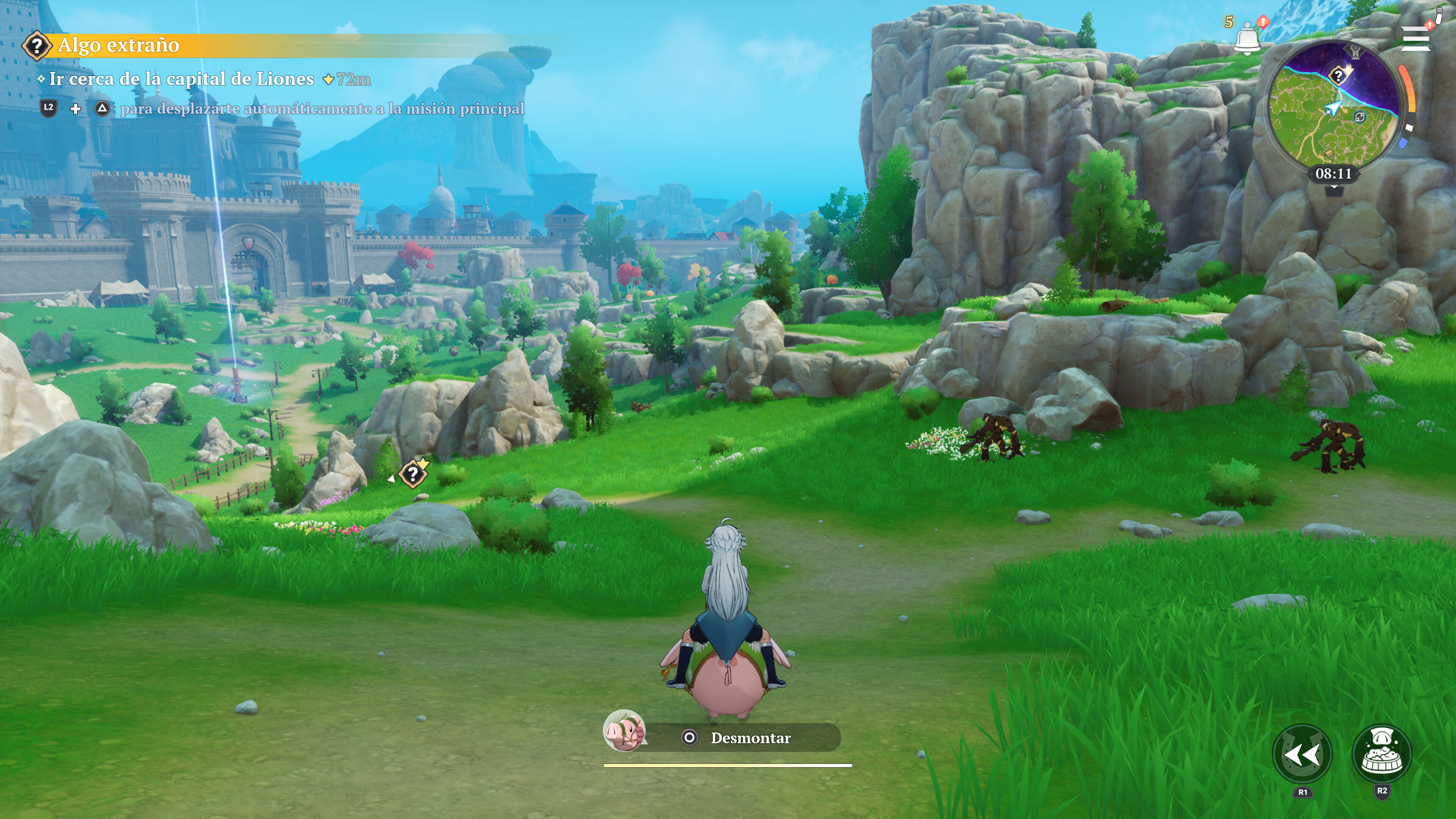 La primera impresión nos recordará rápido a otros ARPG free to play, y por su colorido aspecto es difícil no pensar en Genshin Impact. Tras la presentación de sistemas, The Seven Deadly Sins: Origin nos muestra un juego de rol ambicioso, con sus misiones, secretos para los más curiosos, puzles ocasionales y enemigos dispuestos a plantear cara. Tampoco falta la libertad de movimientos, ya sea con la escalada -con el consumo de vigor-, la opción de planear, el viaje rápido o la montura... incluyendo Hawk, el cerdito, o las actividades de pesca y cocina, o la recolección de objetos y materiales para la fabricación en la mesa de trabajo.