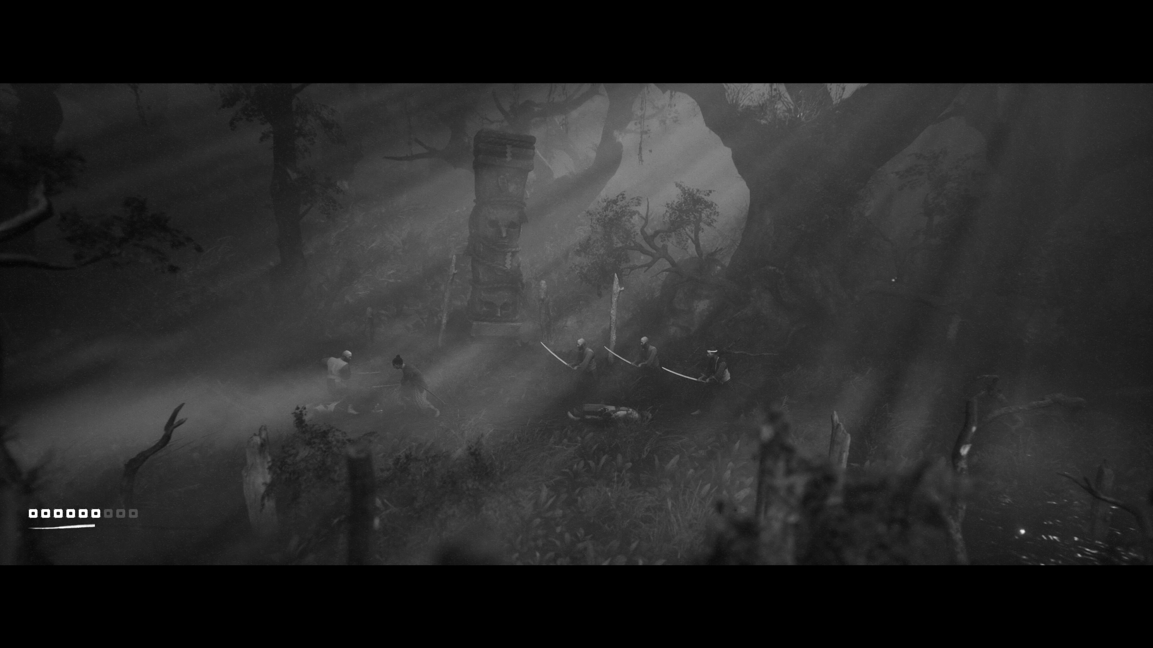 Trek to Yomi es una historia protagonizada por Hiroki, un samurái dispuesto a proteger su aldea tras ver cómo su maestro cae cuando unos invasores asaltan a su pueblo. Como os contamos tras probar el inicio del juego, no es que la historia vaya mucho más allá del manido argumento de impartir justicia con la hoja de la katana, pero la manera en que está contado es lo que hace al título de acción de Flying Wild Hog llame la atención –además hay varias decisiones clave que nos proporcionarán uno de los posibles finales-. El juego utiliza cámaras fijas o con desplazamiento automático que nos recuerda mucho a los Resident Evil de fondos prerrenderizados o, por la ambientación que trata, los primeros Onimusha, y todo acompañado de una imagen en blanco y negro, con grano, polvo y efectos de desgaste en el rollo de película. La desarrolladora quiere que juguemos dentro de una película de Akira Kurosawa, y a la postre esto es lo más sobresaliente de Trek to Yomi.