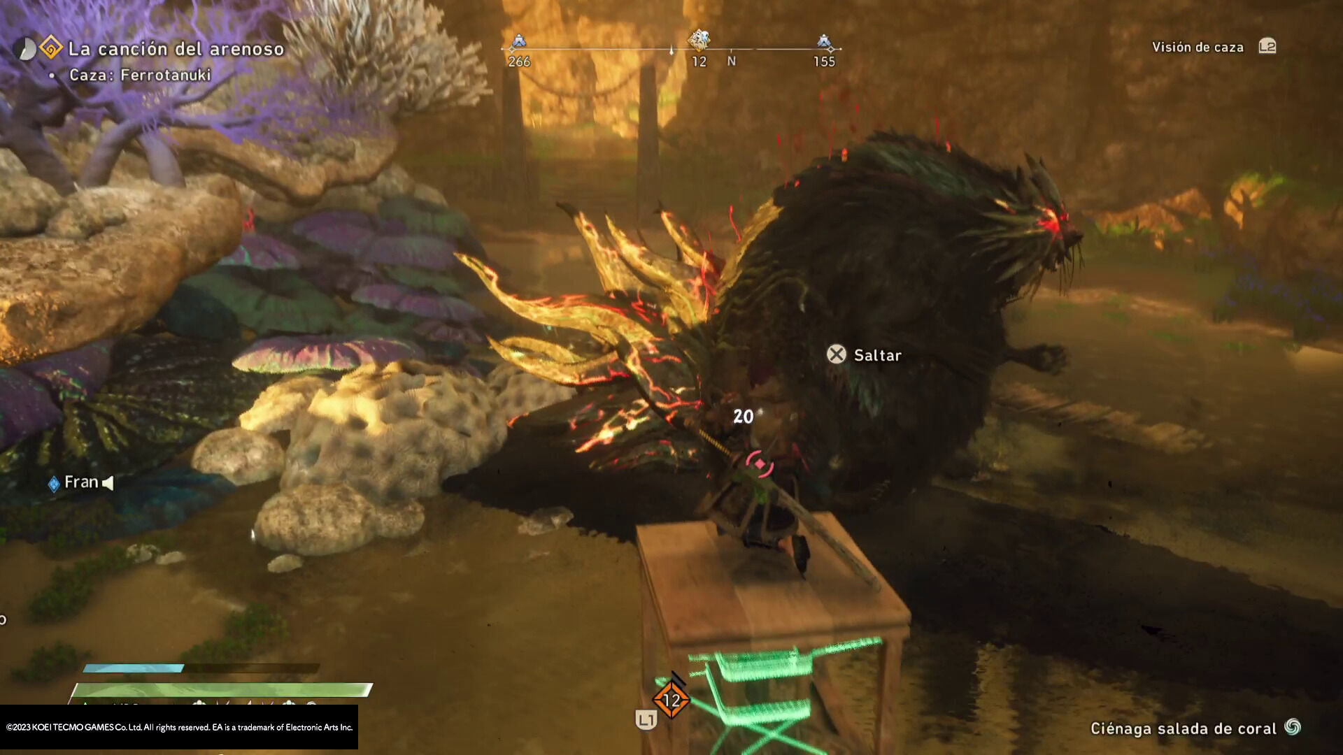 Sin embargo, hay más momentos de frustración que de éxtasis. Un reto de este calibre debe estar medido al milímetro, de manera que el jugador siempre piense que el error es propio y no del juego. Y eso no es así en Wild Hearts. El culpable principal de esto son los entornos: los mundos abiertos con distintos ecosistemas entre los que nos movemos, plagados de criaturas más pequeñas y otros recursos, están más cargados visualmente de lo que deberían en un título en el que hay que esquivar con precisión a bestias que no caben en la pantalla. Así, se dan demasiadas situaciones en la que los monstruos se enganchan en un lugar del escenario, en el que nos colocamos en un punto en el que no queda claro si el ataque adversario va a impactar o no, de tropezarnos con pequeños desniveles o con elementos decorativos… Muchas variables erráticas que se suman a los problemas de la cámara, un descontrol siempre, y un auténtico caos cuando trepamos por la criatura para extraer de sus heridas la hebra celestial necesaria para construir, algo que tampoco funciona tan fino como debería.