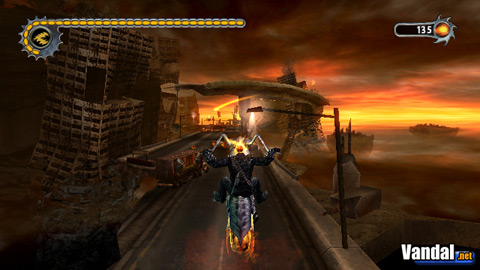 Tras los títulos de presentación, observamos unos cuidados menús con imágenes de la película como telón de fondo. De las opciones a elegir, el modo historia es el principal, y nos trasladará a la aventura de Johnny Blaze contadas por medio de un comic algo animado y con un estupendo doblaje al castellano. Por desgracia, la trama ha sido contada muy por encima, y así es a lo largo de todo el juego, con pequeñas escenas que hilan la nueva misión, pero sin profundizar en los personajes. Este detalle puede ser pasado por alto por todos aquellos conocedores de El Motorista Fantasma, pero resulta algo descuidado para quienes toman contacto por primera vez con el personaje.