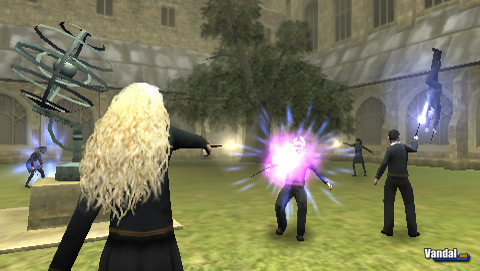 Parte esencial del juego son los inevitables conjuros, que realizaremos por medio de sencillas órdenes. Con el botón R desenfundamos la varita, y nuestro personaje cambia a posición de ataque, momento en el realizaremos conjuros, normalmente uno o varios botones. Este control funciona bien en la mayoría de ocasiones, pero no es raro encontrarse con algún problema con las combinaciones de botones. Un pequeño tutorial al inicio del juego nos pondrá a prueba y obligará a aprender el momento en el que se deben hacer las acciones.