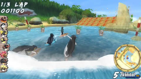 Tras seleccionar el modo competición, el principal para un jugador, disponemos de la elección de pingüino, tabla y torneo. El personaje no influye directamente en nuestras posibilidades, pero si su soporte, que posee parámetros de velocidad, aceleración, etc… estos nunca son realmente decisivos, pero interesa ver las diferentes alternativas.