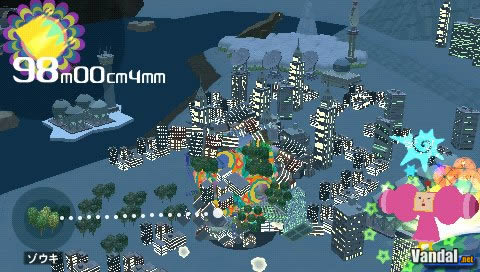 Por regla general siempre comenzaremos las misiones con un tamaño mínimo de apenas unos centímetros y situados dentro de una típica casa japonesa. Con ese tamaño lógicamente no podemos aspirar a recoger más que restos, papeles y demás objetos de un tamaño ínfimo. Pero poco a poco y casi sin darnos cuenta iremos aumentando el tamaño del Katamari hasta llegar a tamaño de, incluso cientos de metros encontrándonos en ese caso con una bola de un tamaño estratosférico y arrasando con tantas ciudades como se nos pongan por delante. Torres, barcos, rascacielos, e incluso otro elementos surrealistas del universo Katamari que podréis descubrir vosotros mismos, ninguno se podrá resistir al poder magnético del Katamari.