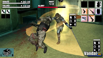 Por ejemplo, atacar por la espalda siempre es más efectivo, y hay movimientos que sólo se pueden realizar desde posiciones determinadas; asimismo, si lanzamos una granada, tendremos que estar seguros de que no nos dañará a nosotros mismo… en el otro lado, no es lo mismo que nos disparen estando tras una esquina que frente al enemigo. Y para poner la guinda al pastel, nada mejor que jugar con dos personajes al mismo tiempo, controlando tanto a Snake como a Teliko (con y sin perfume) y poder crear, de este modo, estrategias más complejas que serán indispensables para, más adelante, hacer frente a algún que otro enemigo final.