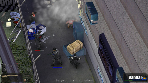 Por otra parte, en las escenas de enfrentamiento del juego vemos que, quizás, los personajes que protagonizan SWAT: Target Liberty no son precisamente lo mejor de las fuerzas especiales. Costará lo suyo que nuestros subordinados acierten a un enemigo, por mucho que éste esté al descubierto, y en ocasiones no podrán ni siquiera alcanzarlo porque corra más que ellos. Por otra parte, no seremos capaz de ver a nuestros oponentes a no ser que estemos a unos pasos de ellos, y el rango de visión de nuestros compañeros no contará en este sentido, al menos no en las primeras fases del título. Aún así, a medida que aumentemos nuestra puntuación general y consigamos superar los diferentes niveles del juego, aumentaremos el nivel de nuestros compañeros, y desbloquearemos cualidades de los mismos que nos servirán luego en el transcurso de la acción.