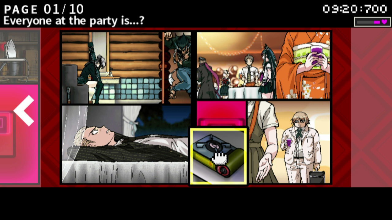 El último paso del juicio es recrear el asesinato en un cómic. Es un poco diferente –y mejor- al visto en el anterior Danganronpa, donde tenías todas las pistas a disposición y 20 minutos completos para rellenar las viñetas vacías. En primer lugar, se nos da todo el cómic pero sólo un set de pistas –pongamos cinco ilustraciones-, de las cuales puede haber falsas –viñetas que no se van a usar-. Hay que colocar las imágenes correctas en su lugar antes de pasar al siguiente set, y el juego te dice ya si lo haces bien o mal, no como en el primer juego que debías esperar al final para saberlo. En segundo lugar, el tiempo para cada set es mucho mejor, pero poner bien las viñetas te recompensa con tiempo. Por último, hay descripciones de texto tanto para la casilla vacía como para las piezas de puzle que tienes, lo que evita malentendidos porque la imagen sea pequeña o no entiendas bien qué está haciendo. A nosotros nos parece que ha mejorado bastante, es más intuitivo.