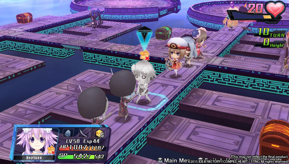 El desarrollo por tanto es terreno conocido para los aficionados al rol táctico. Primero se dejan claros los requisitos para la victoria, que sorprendentemente son variados: eliminar a todos los rivales, defensa de un personaje o matar a un solo enemigo. En el turno del usuario movemos los personajes, ejecutamos los comandos –ataques básicos, habilidades, ítems…- y consumidas nuestras acciones llega el turno del enemigo, que hace lo propio. Existen varios estados alterados incluyendo algunos muy curiosos: transformación en 8 bits, en zombi, en tofu… El humor está siempre presente en los Neptunia.
