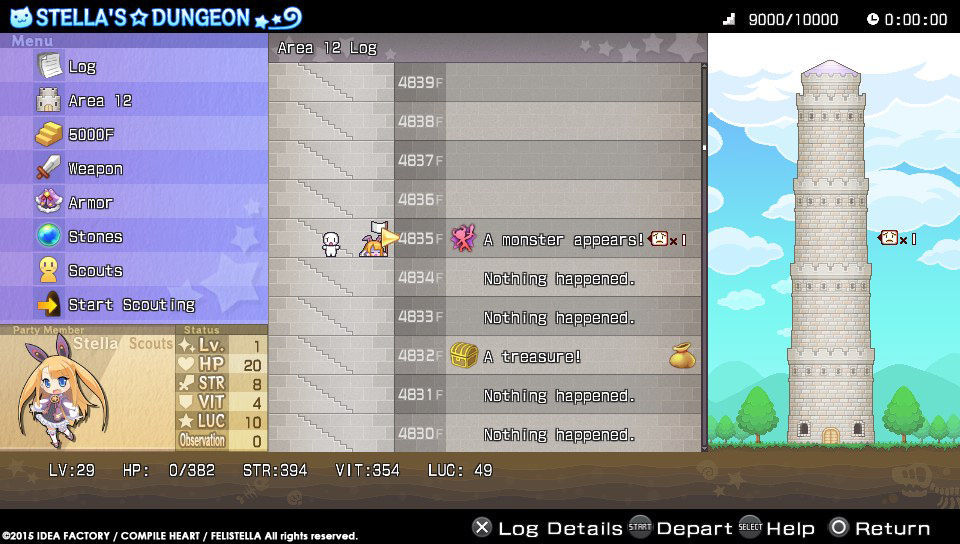 La mazmorra de Stella se ha retocado con más recompensas y es esencial para obtener el mejor final. Estas mazmorras permiten enviar a Stella –la mascota de Felistella- a explorar una torre por su cuenta, mientras jugamos o incluso con el sistema apagado. Si vuelve sana y salva, obtienes multitud de objetos que son útiles para la aventura principal –por ejemplo, nuevos planos para modificar sus características- o para profundizar más en esta opción.