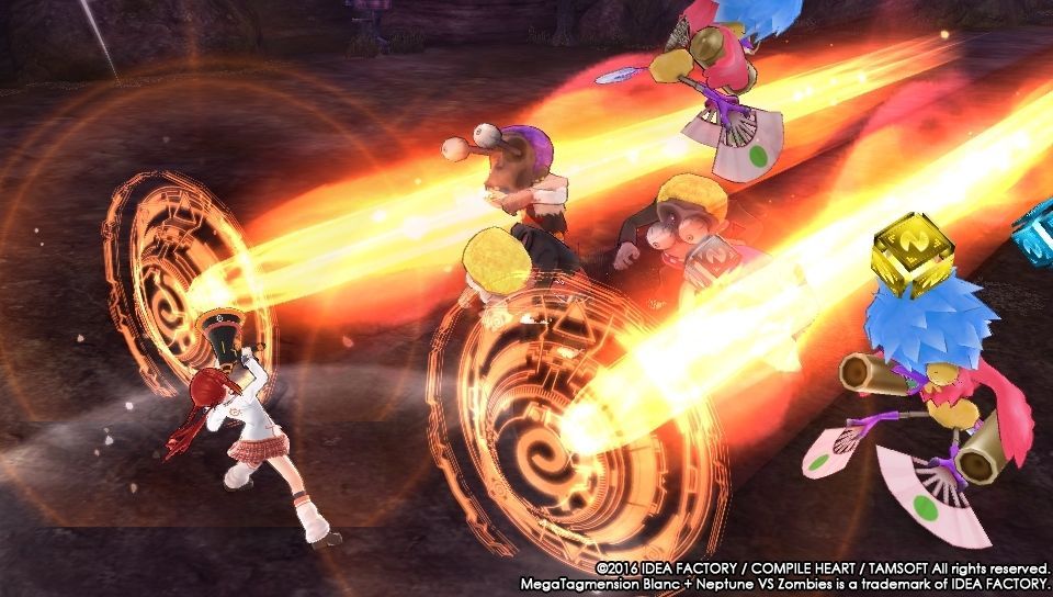 Cada misión –llamada escena- nos enfrenta contra decenas de enemigos simultáneamente. No son los centenares de un Dynasty Warriors, sino algo más manejable para PS Vita. Hay nuevas criaturas zombi, todas con un estilo humorístico, y también rediseños de monstruos clásicos de Neptunia como aquellos inspirados en los limo de Dragon Quest. Utilizan ataques básicos y una inteligencia bastante escasa, no obstante hay que evitar ser rodeado porque la vida baja peligrosamente con una lluvia de golpes.