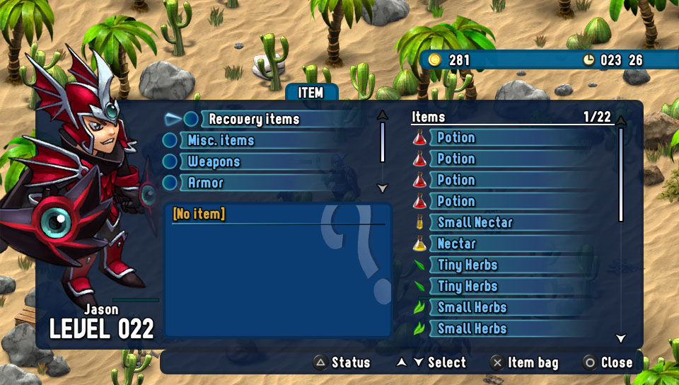 Esa es la mayor pega específica de la versión, que por otro lado, es una adaptación perfecta en todos los sentidos, para bien –misma calidad, técnica, aunque no sea un gran esfuerzo para PS Vita- o para mal –ningún cambio drástico ni funciones exclusivas de la portátil-, por lo que tenemos la misma aventura basada en la exploración del mapa, la recolección de objetos e ítems, la mejora de los parámetros luchando y la resolución de las misiones secundarias encargadas por los personajes, así como aquellos aspectos mejorables que delataban su presupuesto reducido.