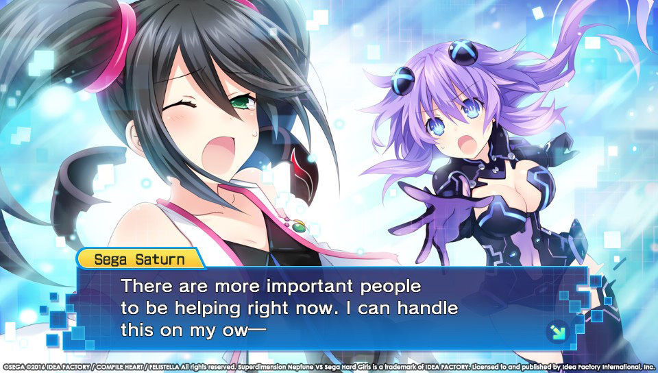 El crossover entre Hyperdimension Neptunia y Sega Hard Girls era tan lógico que estaba destinado a que sucediese. Son dos sagas, una de videojuegos y otra de anime –previamente novela ligera-, protagonizadas por una serie de diosas que representan a videoconsolas. En el caso de Sega Hard Girls reducido, lógicamente, al catálogo de Sega, mientras que Hyperdimension Neptunia parodia a toda la industria en general –de hecho, Neptune simbolizaba a Sega y su prototipo de unir Mega Drive con 32X-.