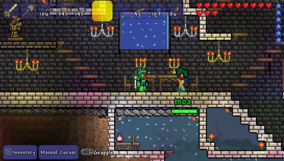 Aunque ya lo hemos podido disfrutar en multitud de formatos, incluidos teléfonos móviles, por motivos evidentes estamos ante la mejor versión portátil de Terraria, en una perfecta mezcla de controles tradicionales y táctiles, que le sientan estupendamente a un juego en el que usamos constantemente accesos directos. El que podamos jugar con usuarios de PS3 se agradece, y también el hecho de que podamos compartir la misma partida entre ambas versiones, pero es una pena que no se haya contemplado la opción del Cross-Buy, ya que las versiones de PS3 y PS Vita se venden por separado.