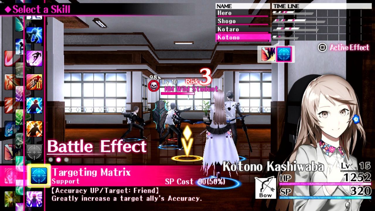 Si con los estudiantes más o menos amistosos podremos establecer relaciones, con lo que no lo son tanto (llamados digiheads en el juego) tendremos que pelear en unas batallas en las que nos saldrán partes en forma de armas del cuerpo, las cuales son especialmente interesantes en el momento en que nuestro protagonista no está solo en batalla, sino que le acompañan varios compañeros (hasta cuatro). La mecánica es una de las más interesantes vistas en un juego por turnos en los últimos tiempos, y la gracia del sistema consiste en que en lugar de tener un turno para cada uno de los protagonistas y enemigos, estos se superponen, de manera que tenemos que elegir con sabiduría para que estos ataques tengan el mayor efecto posible, para lo que contamos con la ayuda de un sistema que nos permite ver, más o menos, lo que va a pasar.
