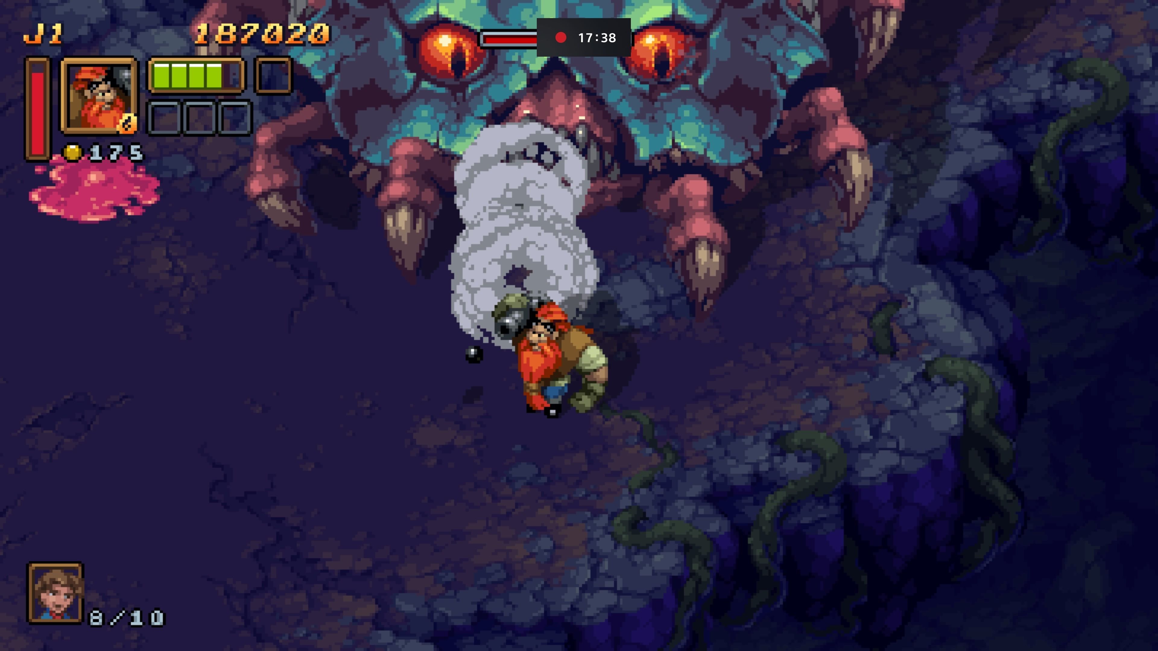 Puede que no sea el título más original del momento (es el caso opuesto), pero entretiene lo suyo y además pica bastante. Una odisea de acción salvaje con un toque gore en plan dibujos animados que le sienta de maravilla, al igual que sucede con su nivel de dificultad. Y es que incluso en el nivel fácil, no se trata de un juego precisamente sencillo, obligándonos a aprendernos las pautas de ataque de los enemigos finales al dedillo para no caer en plena batalla… si es que conseguimos llegar hasta ellos de antemano. Una producción que como podéis observar también ha sido bendecida por un acabado técnico formidable. La estética nos parece cautivadora y da gusto contemplar tanto los decorados como a las bestias que campean por las diferentes localizaciones que visitamos, muy variadas por cierto. Y la banda sonora… es una maravilla. Compuesta por la infravalorada Manami Matsumae, cuyo pasado está muy ligado a obras maestras como UN Squadron, Final Fight y semejantes barbaridades, cada melodía es una oda al buen gusto musical. Por lo tanto, estamos ante un título de naturaleza indie muy destacado en su faceta audiovisual.